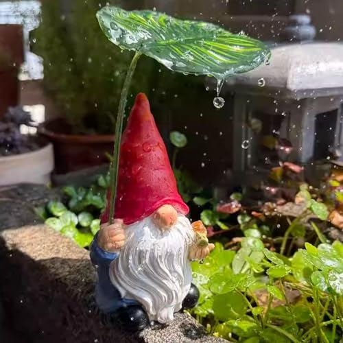 - Unique Natural Art: Featuring attire with leaves and an iconic hat, this gnome statue wields a leaf-textured umbrella, creating a captivating piece of natural art that improves outdoor spaces with refined charm