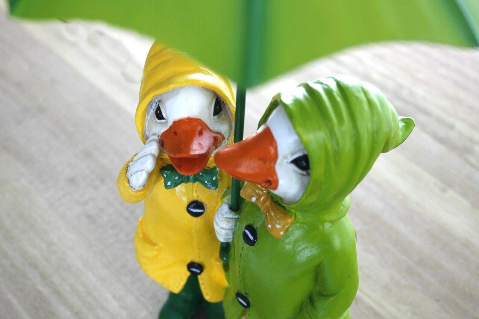 - Garden Decor - This Garden Decoration Will Look Amazing By Itself, Or Group It Together With The Sitting Ducklings For A Complete Family Of Duck Outdoor Statues. Each Garden Ornament Comes Finished With An Umbrella And Raincoat To Endure The Rain.