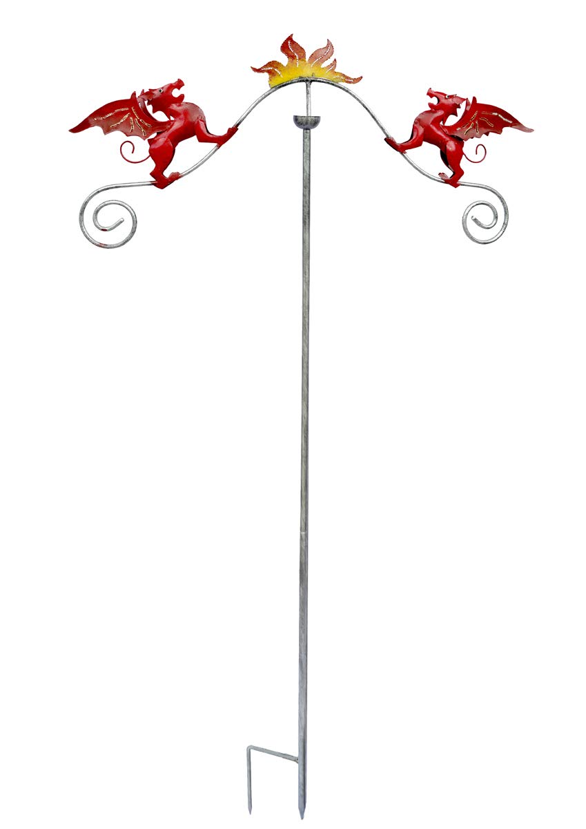 Details: Metal garden wind vane spinner - Red Dragon Design Freestanding garden stake and balance arm sculpture which rotates and rocks in the wind Constructed from metal, powder coated and handpainted in a bright and colourful finish Wonderful design to add movement to the garden and a perfect gift all year round Individual design with stake in two pieces which easily slots together Measures approximately 116cm (45.5") high x 64cm (25") wide x 10cm (4") deep