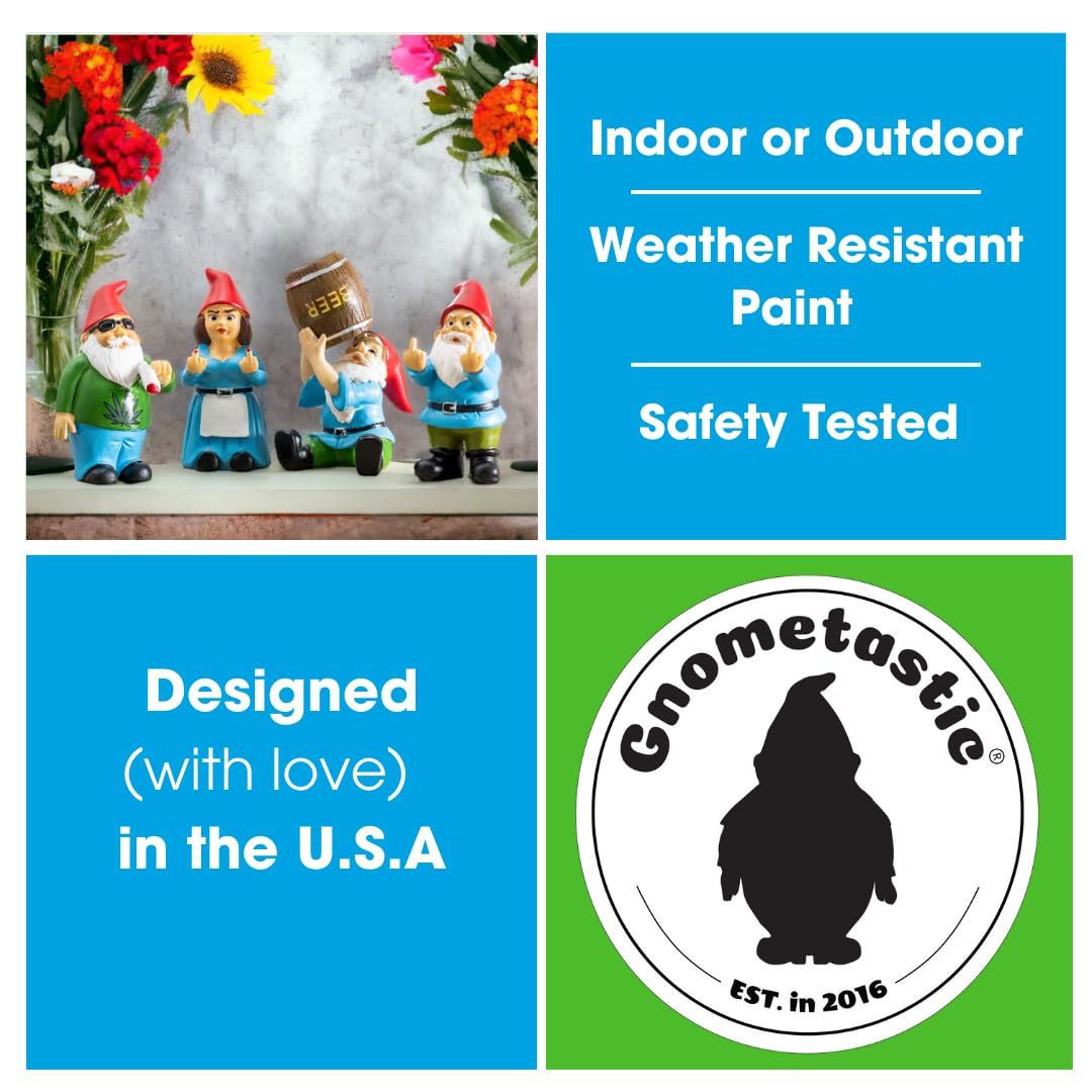 - MEET THE GNOME MINI: We took our favorite (slightly offensive, odd and often inappropriate) knomes and shrunk them down. Small gnomes figurines 3 to 5 inches easily fit into planter pots, fairy garden and terrarium accessories, lawn and home decorations or desk toys for adults. We suggest giving them as gifts to your friends, mom and dad, stoners or a funny gag gift for adults.