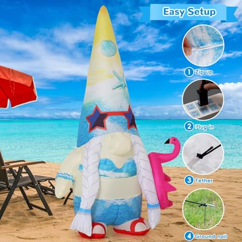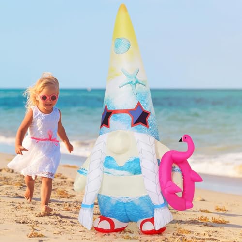 - 【Beach Party Decorations】This 5FT tropical party decorations feature Sunglasses Swimsuit Summer Gnome holding a flamingo swimming ring, suit for pool, beach or patio, indoor and outdoor use, add cheerful atmosphere