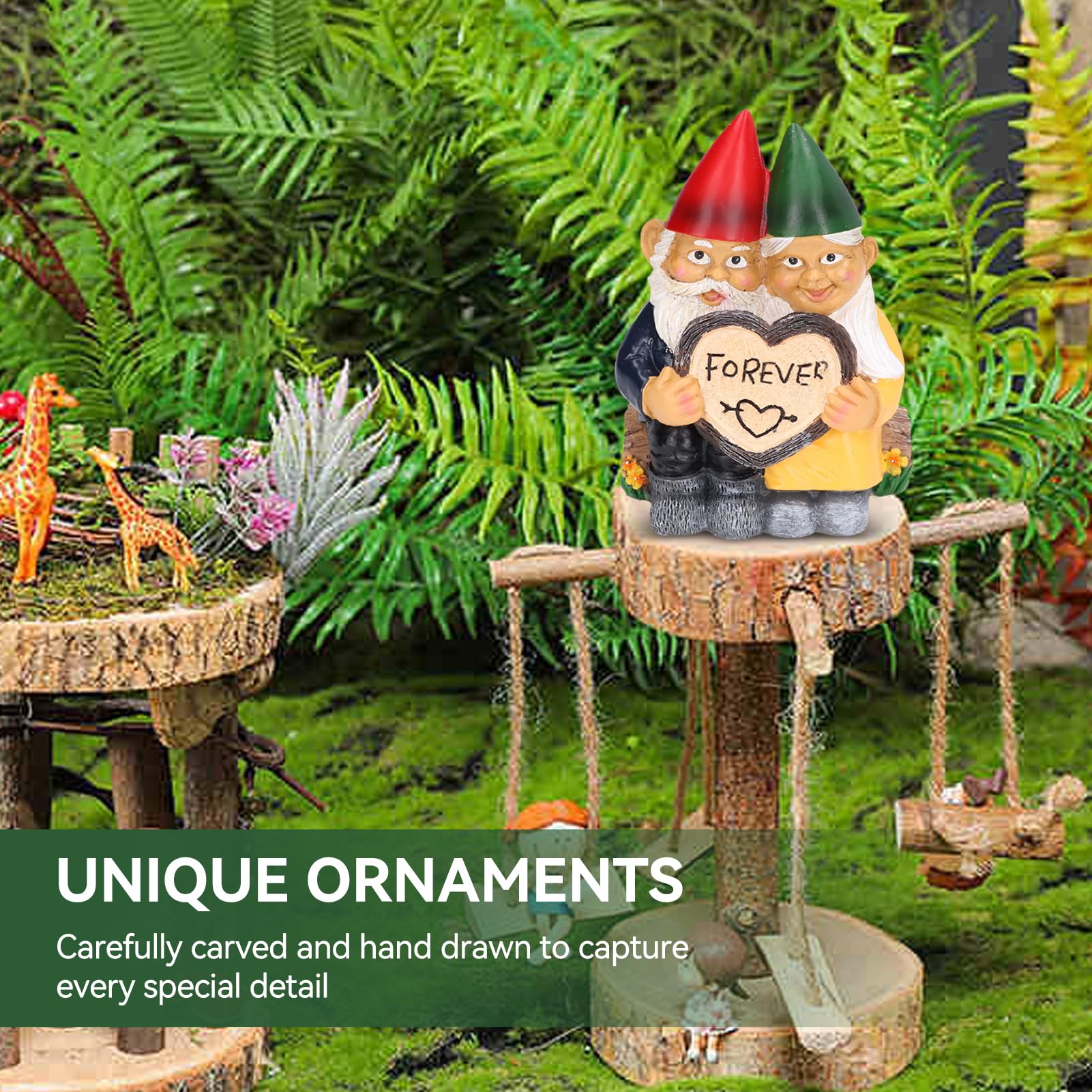 - CHARMING: This cute christmas gnome statue sculpture, hand painted figurine features a charming gnome couple who shared some romantic moments in love.Garden gnomes outdoor funny also carries folk tradition and cultural connotation. Gnomes garden ornaments show local people's yearning and pursuit of a better life through different shapes and meanings