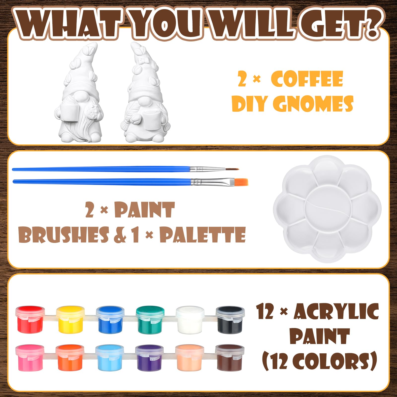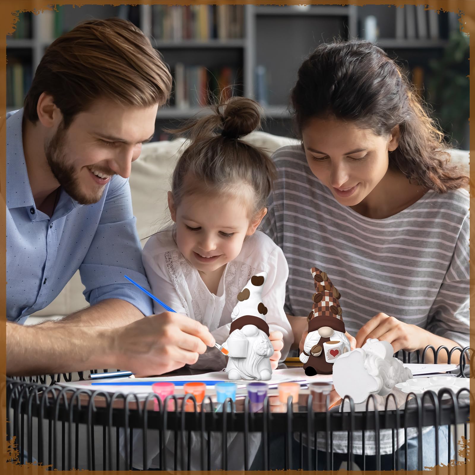 The coffee gnomes to paint aid in the cultivation of people's imagination, creativity, and concentration. Suitable for family activities, coffee parties, etc., also nice to embellish the coffee bar, tabletop, bookshelf, fireplace, etc.
