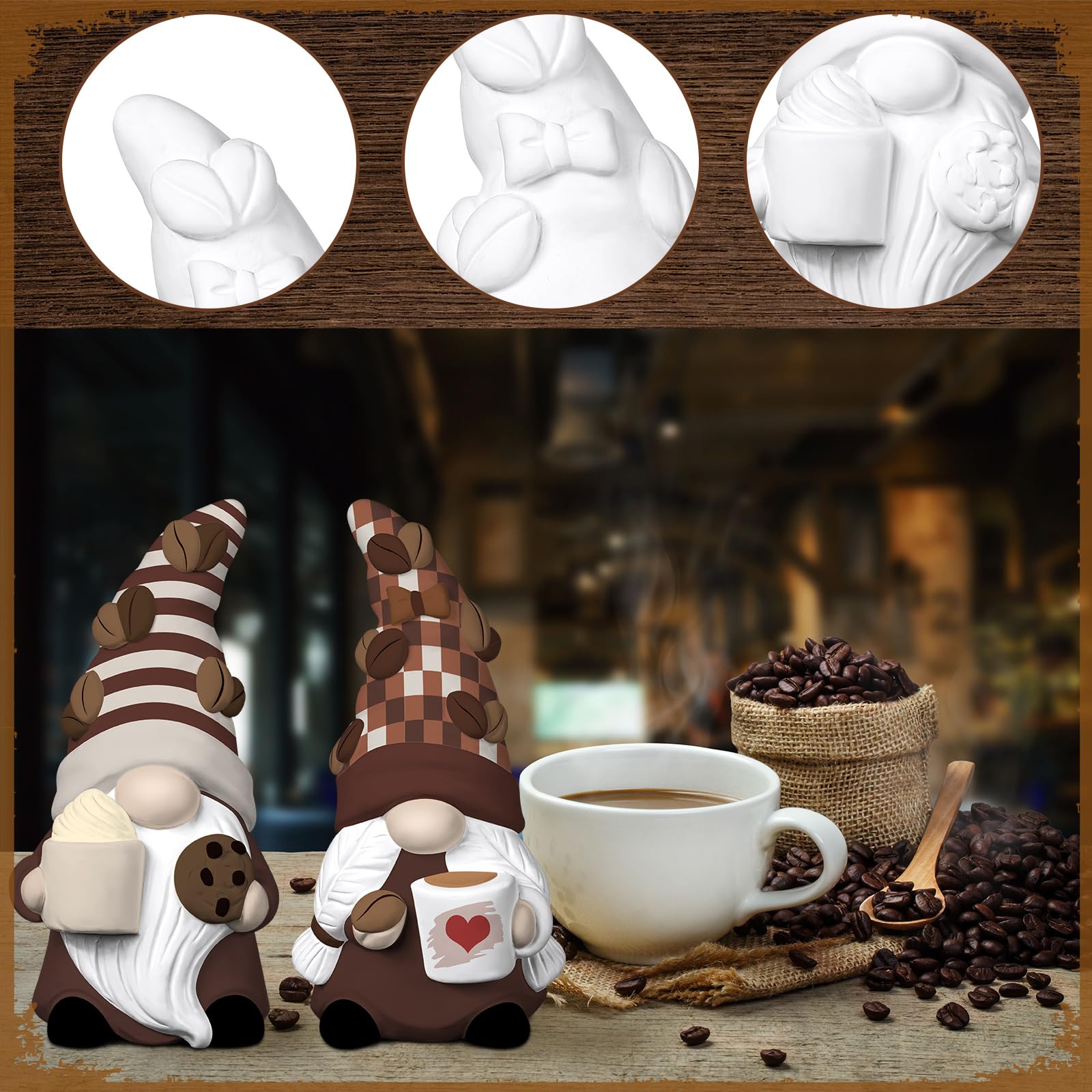- Inject Fun into Your Life: these coffee gnomes to paint can be displayed in the coffee bar, table, bookshelf, bedroom, living room, fireplace, windowsill, etc., bringing energy and fun to your life, creating a festive atmosphere; These coffee gnomes are an outstanding accent to any coffee bar, kitchen or living space
