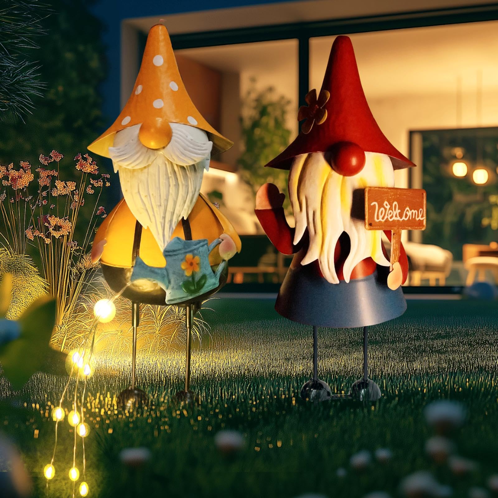 - 【Cute Gnomes Yard Decor】Featuring gnomes wearing color hats, one holding a Solar Watering Can, and another holding a "Welcome" Garden Sign. Add bright colors to your favorite outdoor space, create a whimsical vibe to your yard or garden