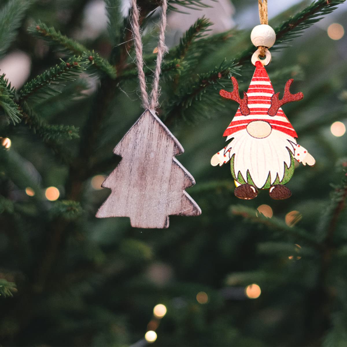 Jagowa 12PCS Wooden Christmas Ornaments - Faceless Dolls for Christmas Tree Decor and Party