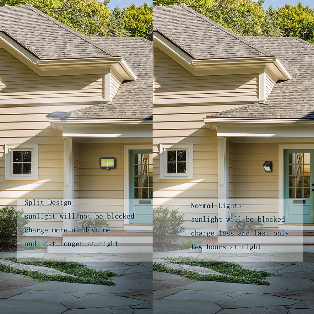 - 【Split Design】Compared with those normal solar wall light in market, we separated the solar panel and the lighting body, providing double bigger solar charging panel, to store much more power at daytime and to give off longer and brighter light at night.