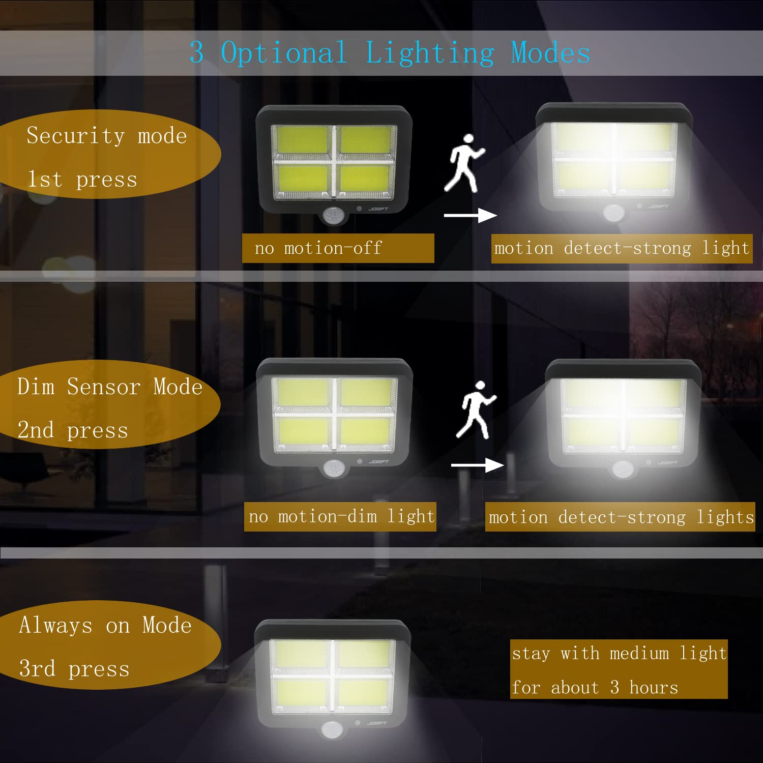 - 【COB Bright Security Lights】Equipped with 128 high efficiency SMD COB LED, providing a bright and excellent illumination for your house, walkway all night.