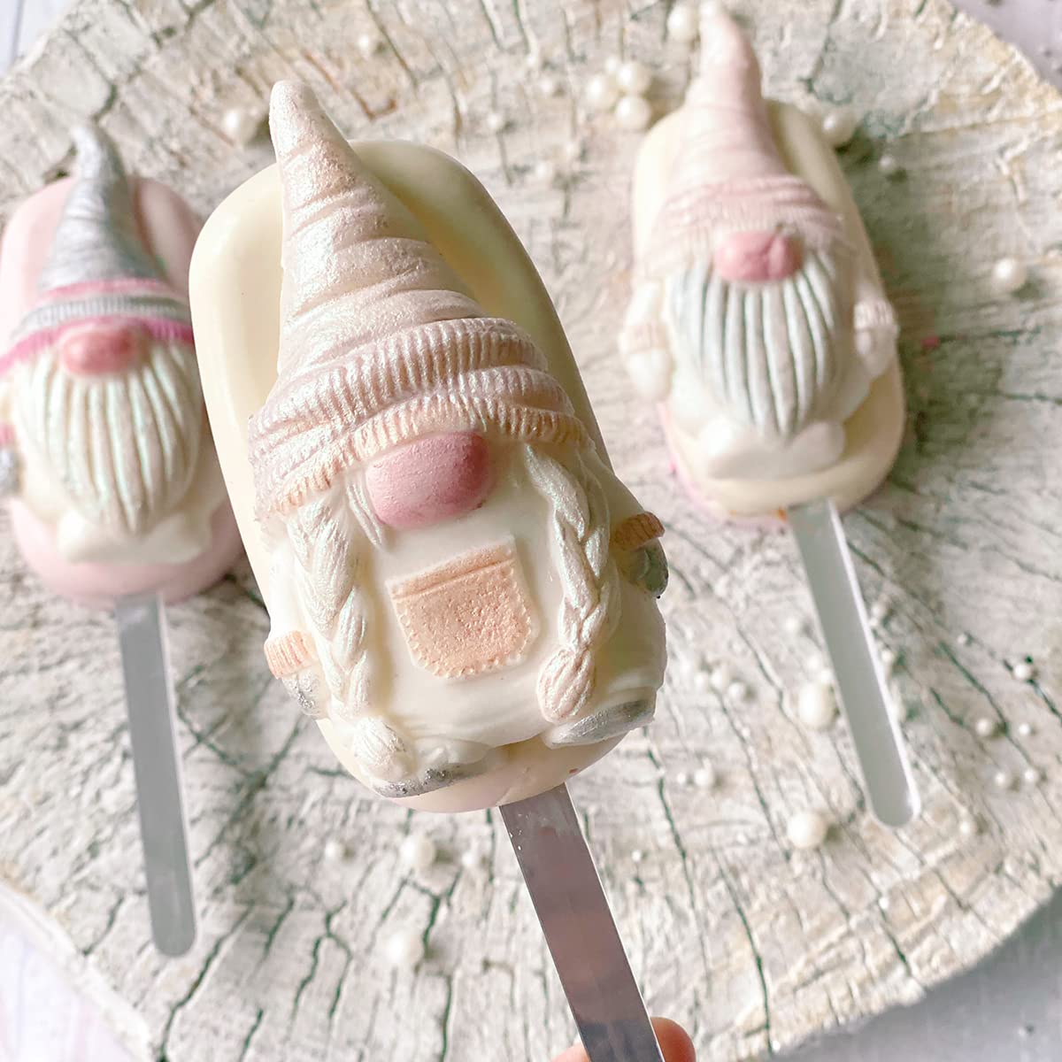 - The Katy Sue Boy and Girl Gnomes silicone moulds create adorable gnome or gonk figures complete with gnome hat, gnome nose and either beard or long hair. The Gnomes embellishments the moulds make are 90 tall x 55 wide in millimetres, making them the perfect size for Christmas cake decorating and seasonal craft projects.