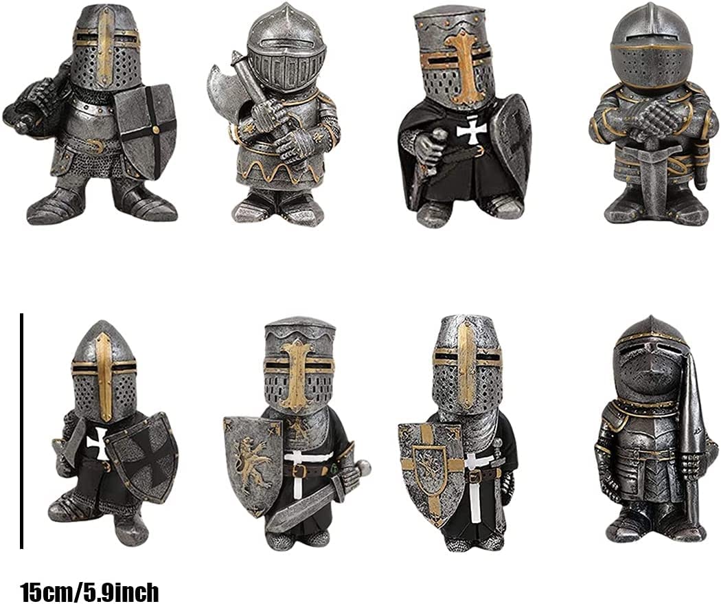 - ⚔ OUTDOOR STATUES GARDEN DECOR GIFT - An excellent gift for your favorite knight friends on birthday, and Christmas gnomes gifts. There are eight styles of Knight Gnomes Guard, Complete your dollhouse miniature medieval castle collection with this suit of armor knight figurine!