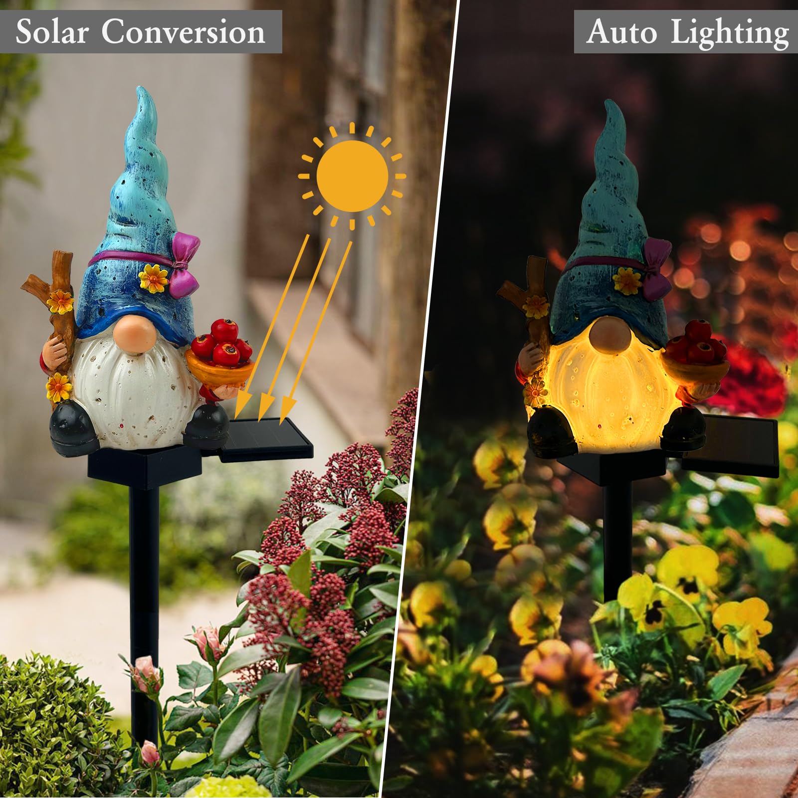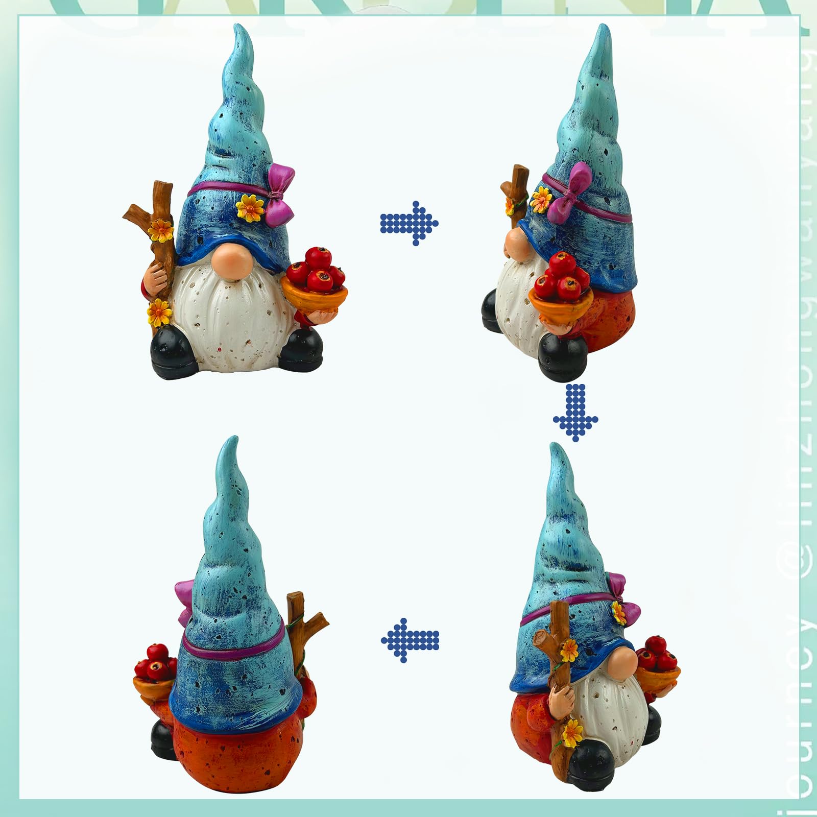 - Premium Resin : Yard gnomes is made of pure natural resin, Features the classic gnome image with flowers, butterflies, birds and apples to bring the whole gnome to life! With IP55 waterproof design, it can work in most weather conditions