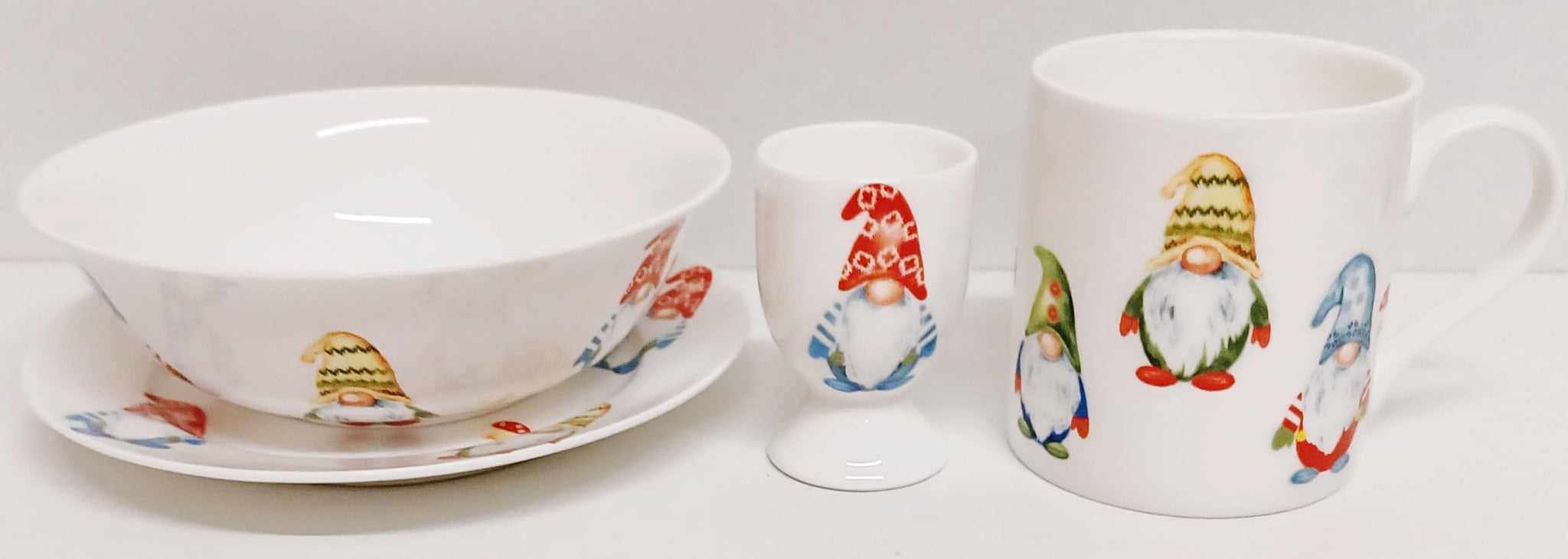 - Festive Design: Featuring hand-decorated, cheerful gnome characters in vibrant colours, this breakfast set brings a touch of holiday cheer to your table.