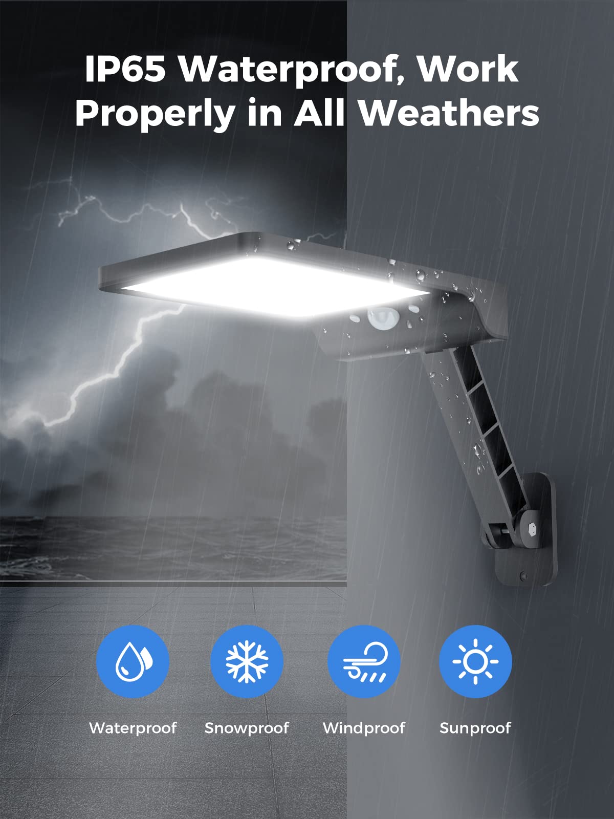 - IP65 waterproof: The solar lights for outdoor wall with motion sensor are made of high-quality ABS, which is waterproof and heat-resistant and can withstand all types of harsh weather. Suitable for a variety of scenarios, such as backyards, porches, farms, patios, gardens, etc.