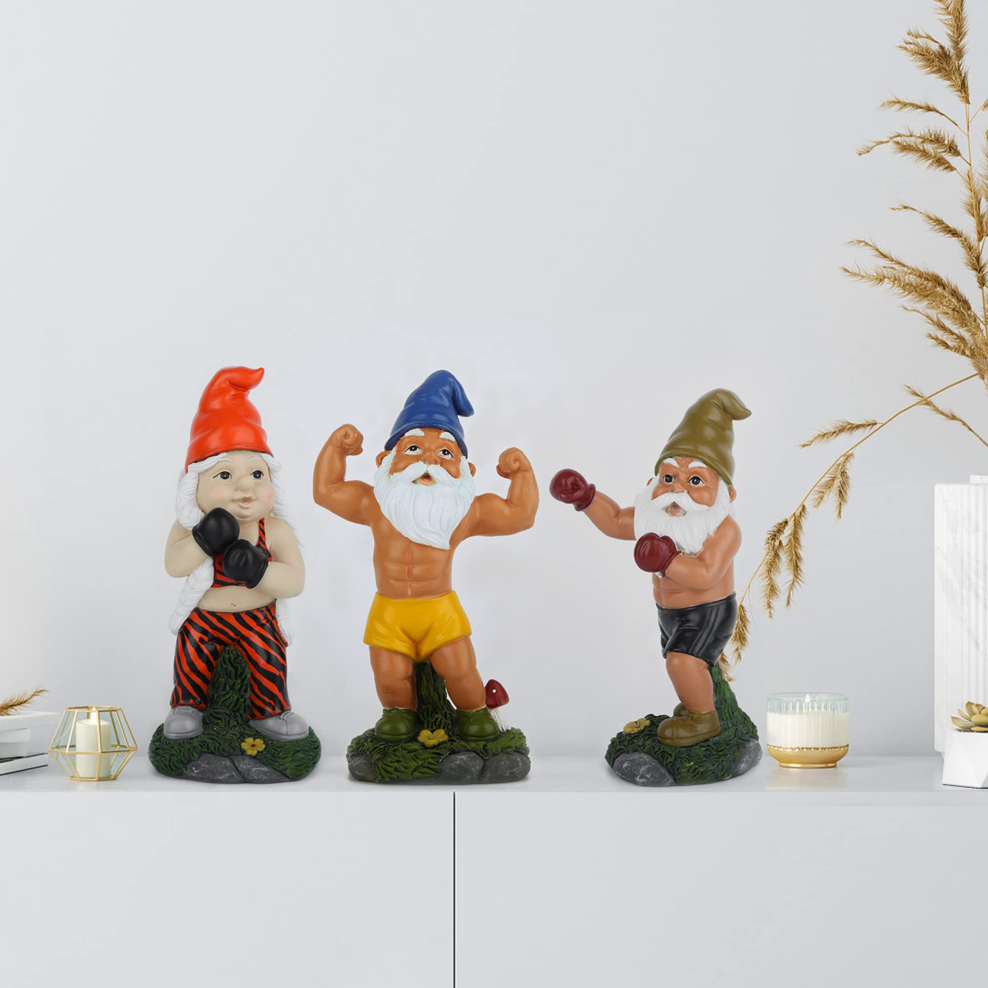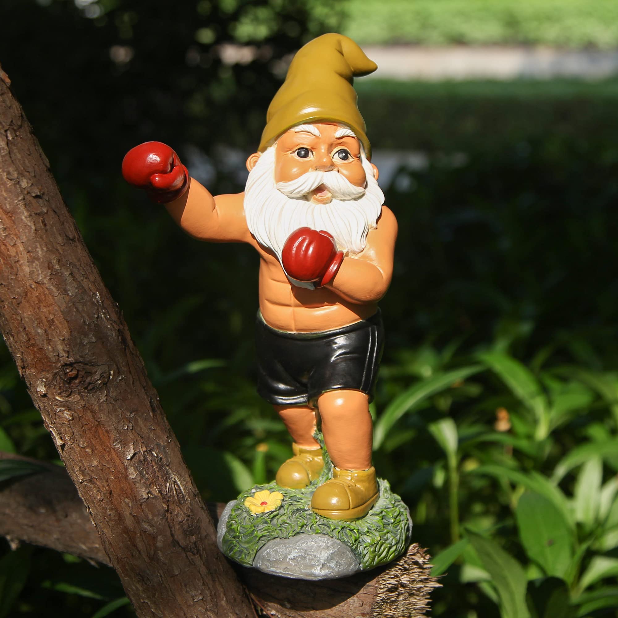 - NEW DESIGN FOR GARDEN LOVER: Boxing gnome: 10.8*4.1*4.9 inch. The NEW design workout garden gnomes statues will enrich your unique fairy tale garden village, that will be one of the best garden decortaion or gift choice. Such As Birthdays, Christmas, Thanksgiving, Etc.