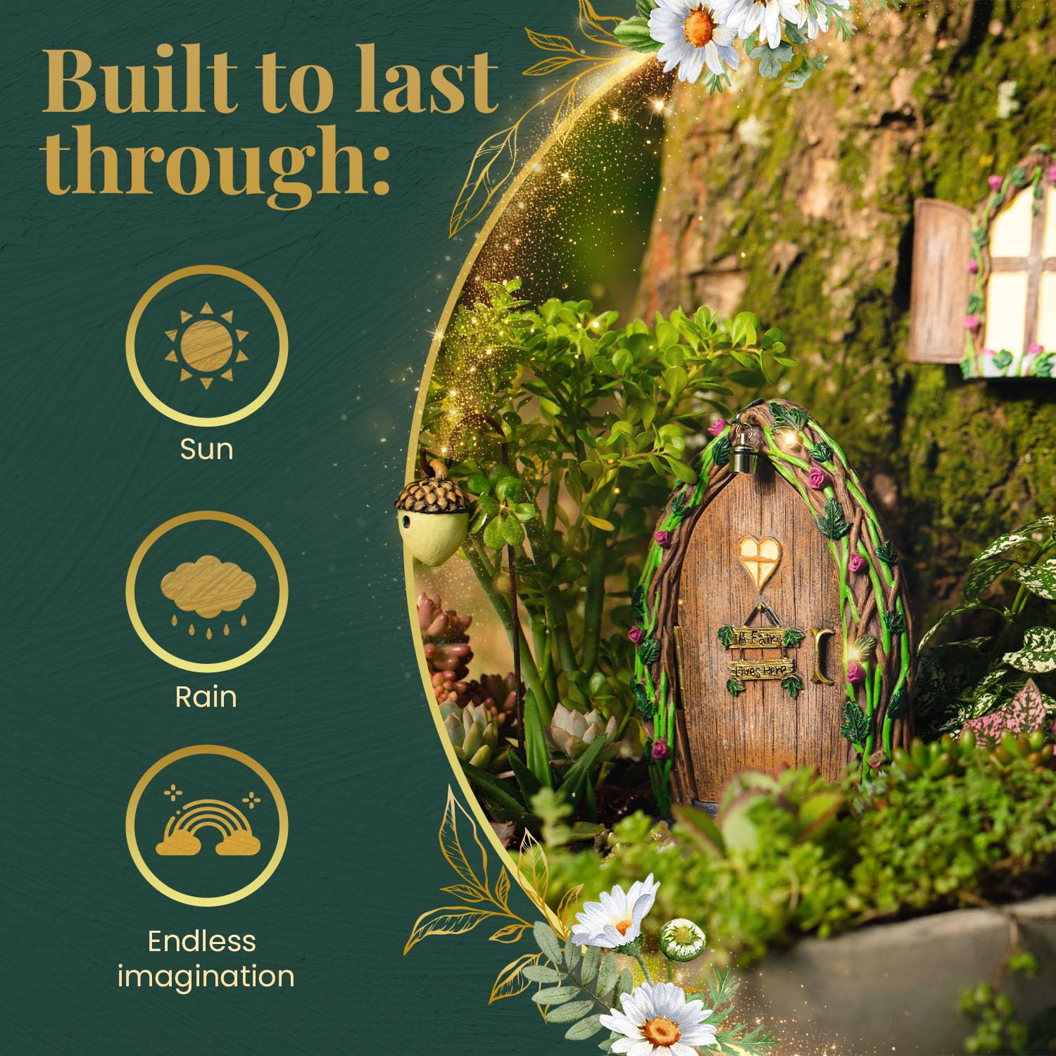 - Best friend fairy gift: This enchanted openining fairy door and window are the perfect gift for fairy lovers and kids; Enjoy the gardening experience with your little one with this kit, it is designed to nurture their creativity, expression and learning as they build a fairy garden around it; GIVE BACK: Fairies’ job is to heal and protect the environment; You can help them! We have partnered with the NGO OneTreePlanted and are giving part of our proceeds to plant trees in the Amazon forest
