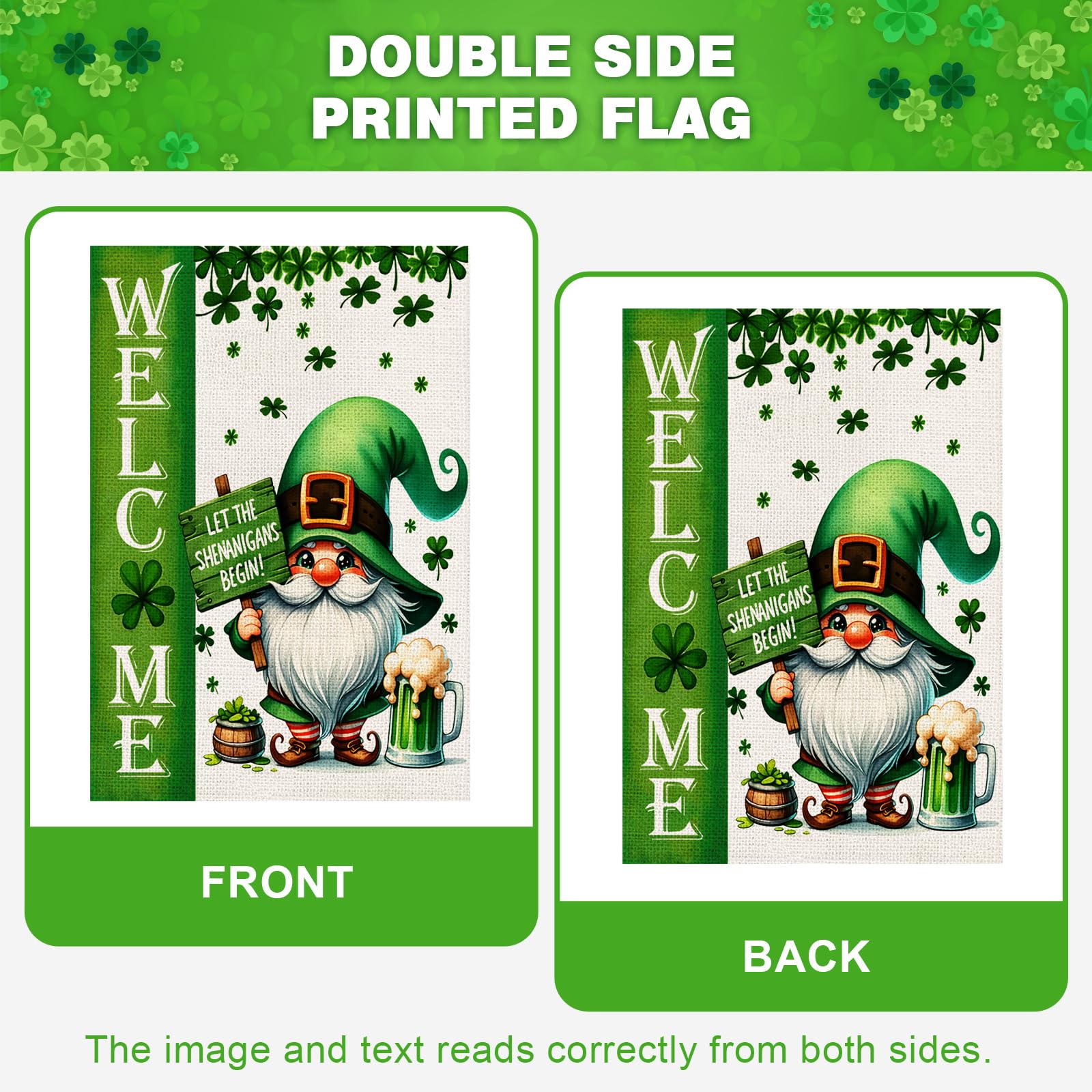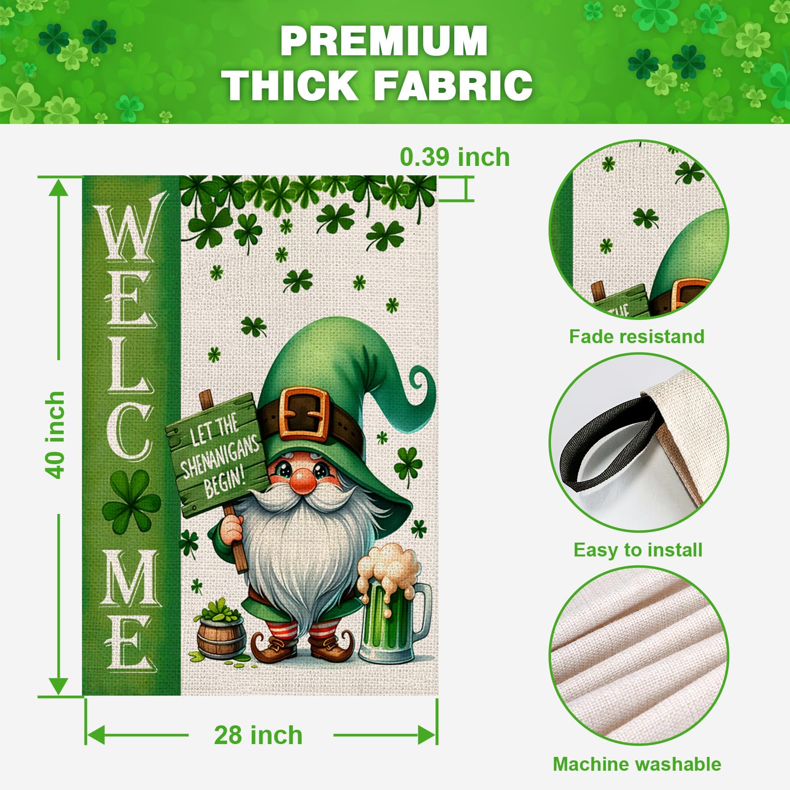 Details: OPULANE St Patricks Day Welcome House Flag 28x40 Inch Double Sided Gnome Lucky Shamrocks Clovers Large Outside Flag for Yard Outdoor Holiday Decoration