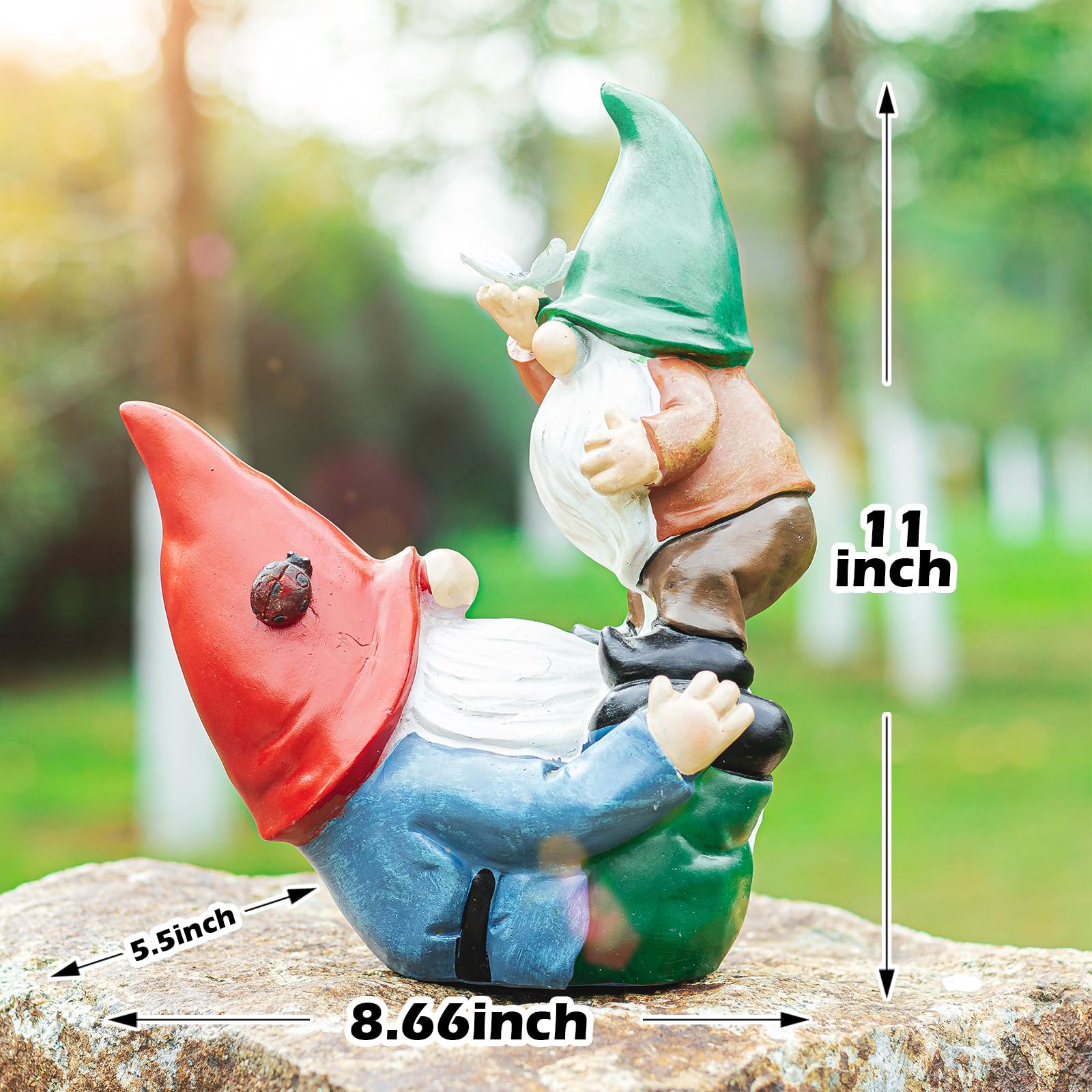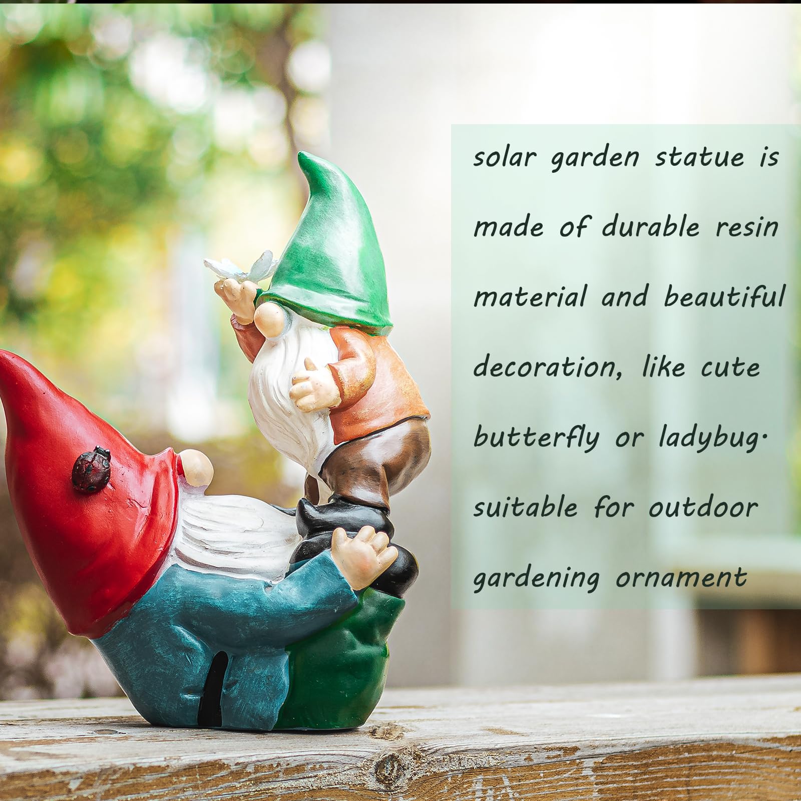 - 【Funny Garden Statues】two funny gnomes playing together, decorated with cute butterfly and ladybug, its interesting design make this gnomes more unique and adorable, which be a nice ornament in your yard