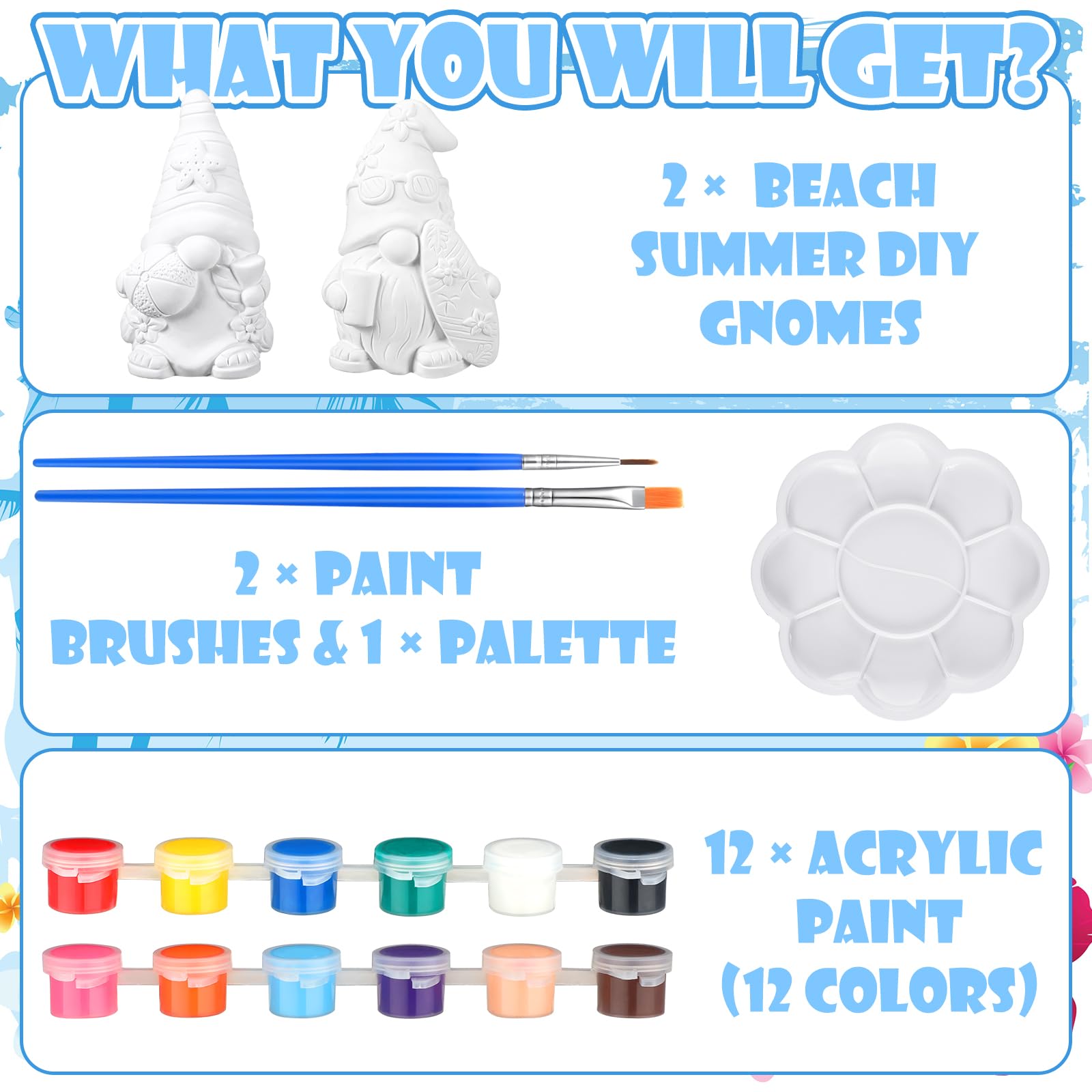 - Creative DIY Gnome Statue Artistry: unleash the artist in you with unpainted gnomes; Included in the package are 2 unfinished ceramic gnomes in summer beach designs that you can personalize according to your style and preference; It's a nice chance to improve your imagination, creativity, concentration, and color cognition