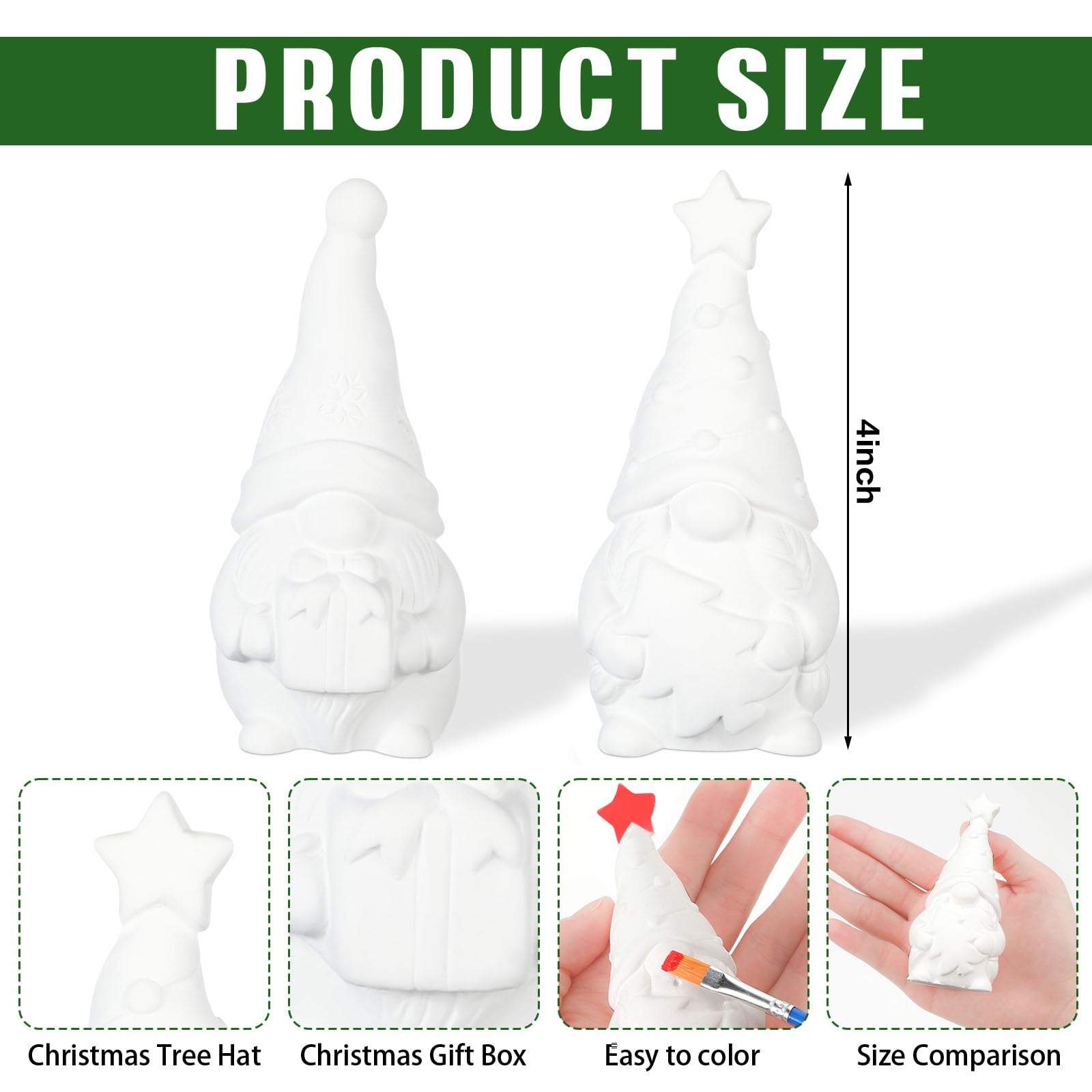 - Ideal Holiday Decoration and Gift: these ceramic ornaments to paint make for the ideal festive decoration, adding a special touch to your parties, whether at home, office, or school; With their detailed designs, one gnome holding a gift box and the other holding a tree; They'll surely be the hit of your holiday decorations; They also make for lovely gifts for family and partners