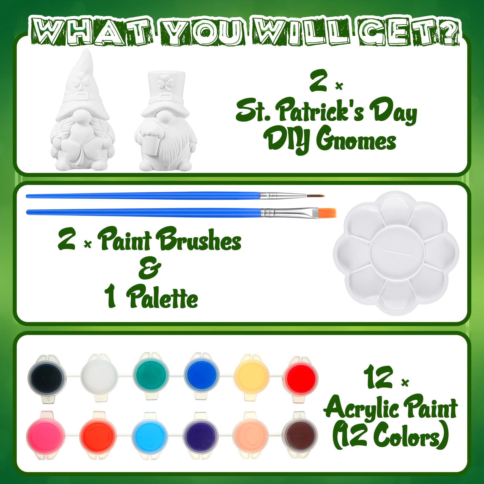 - Complete Paint Kit with Ceramic Gnome Statues: the paint your own ceramic kits come equipped with everything you need for an enjoyable painting experience; It includes 2 ceramic gnome statues about 4 inches, 2 paintbrushes for precision, 1 color palette for mixing paints, and 12 vibrant acrylic paints to bring your gnomes to life