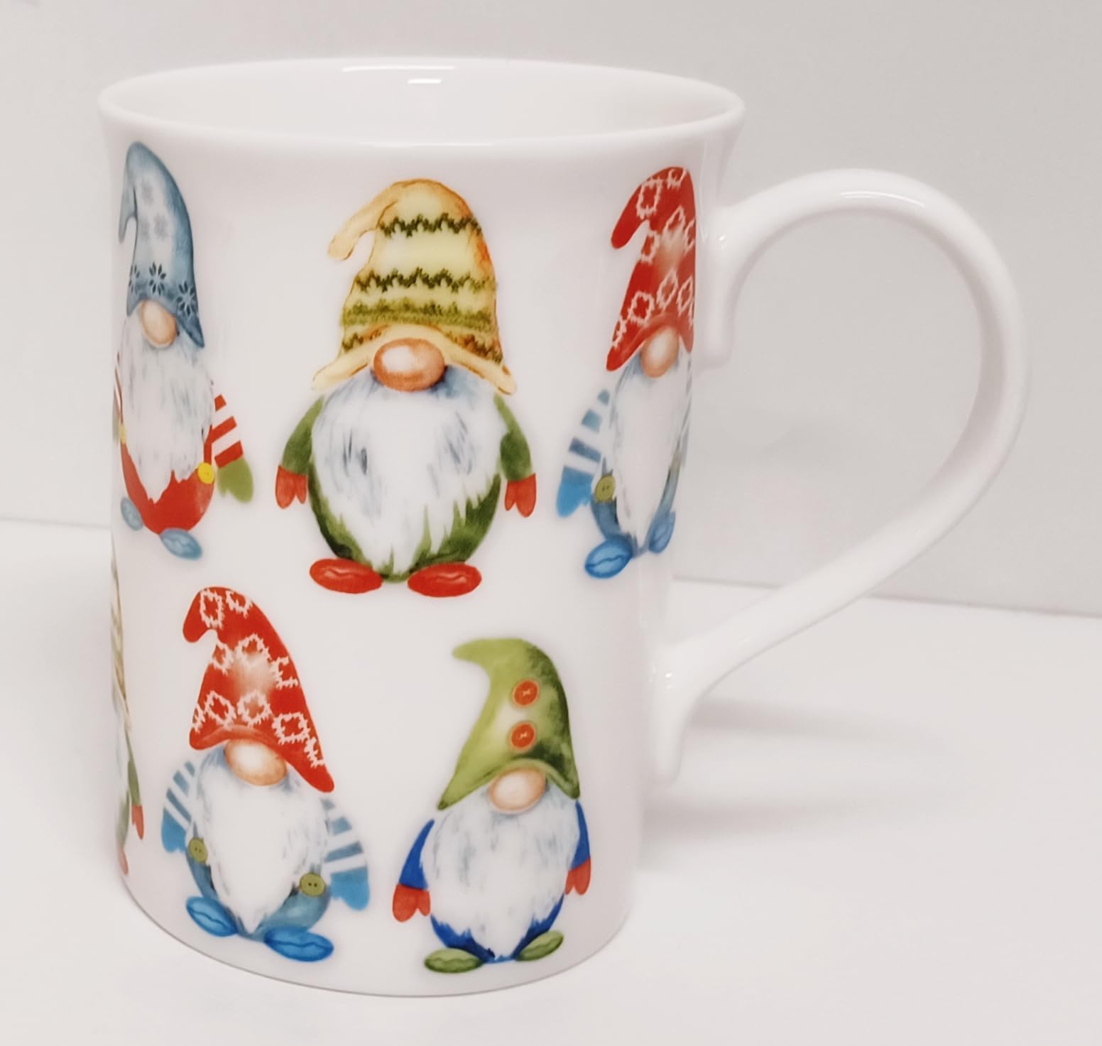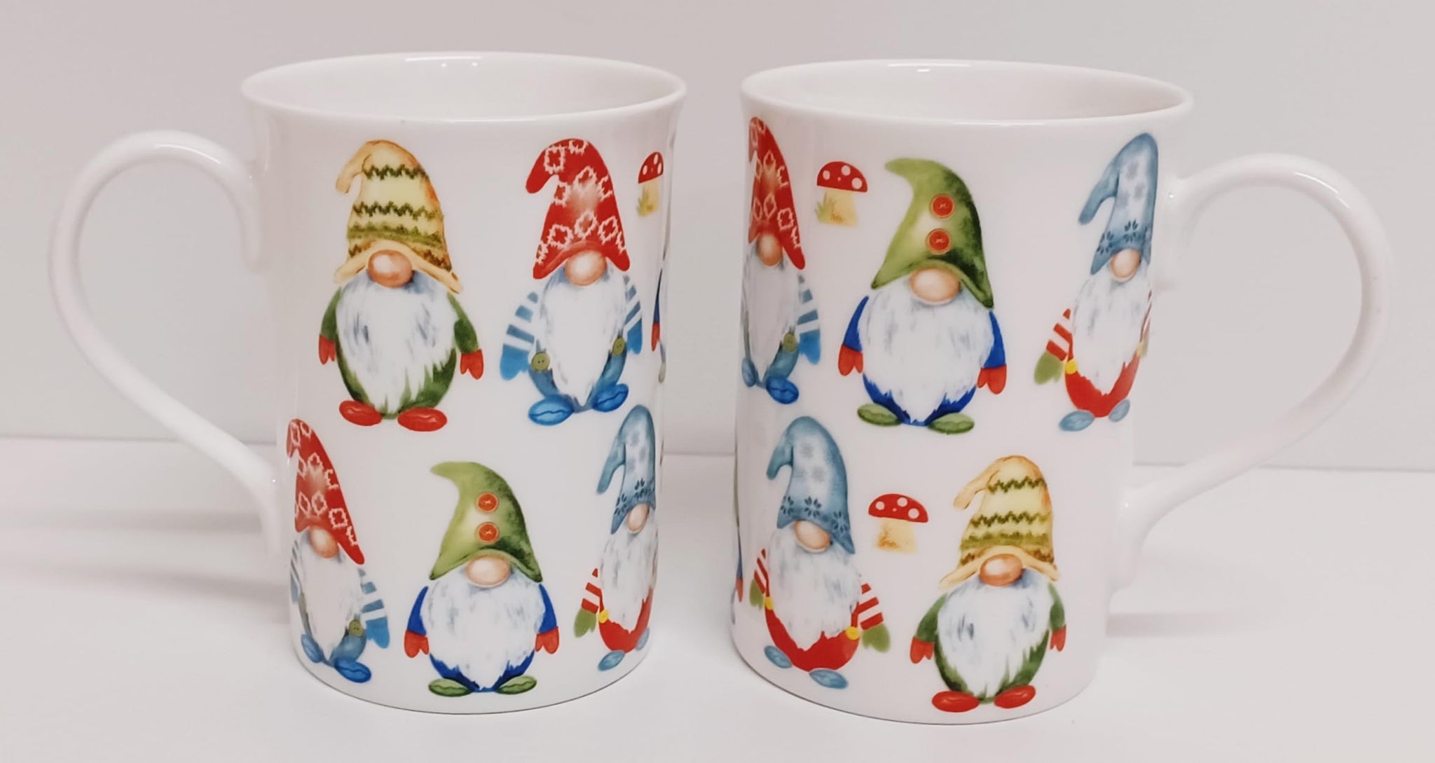 - Charming Set: Enjoy your favourite hot beverage with this delightful set of 4 bone china mugs featuring whimsical gnome designs.