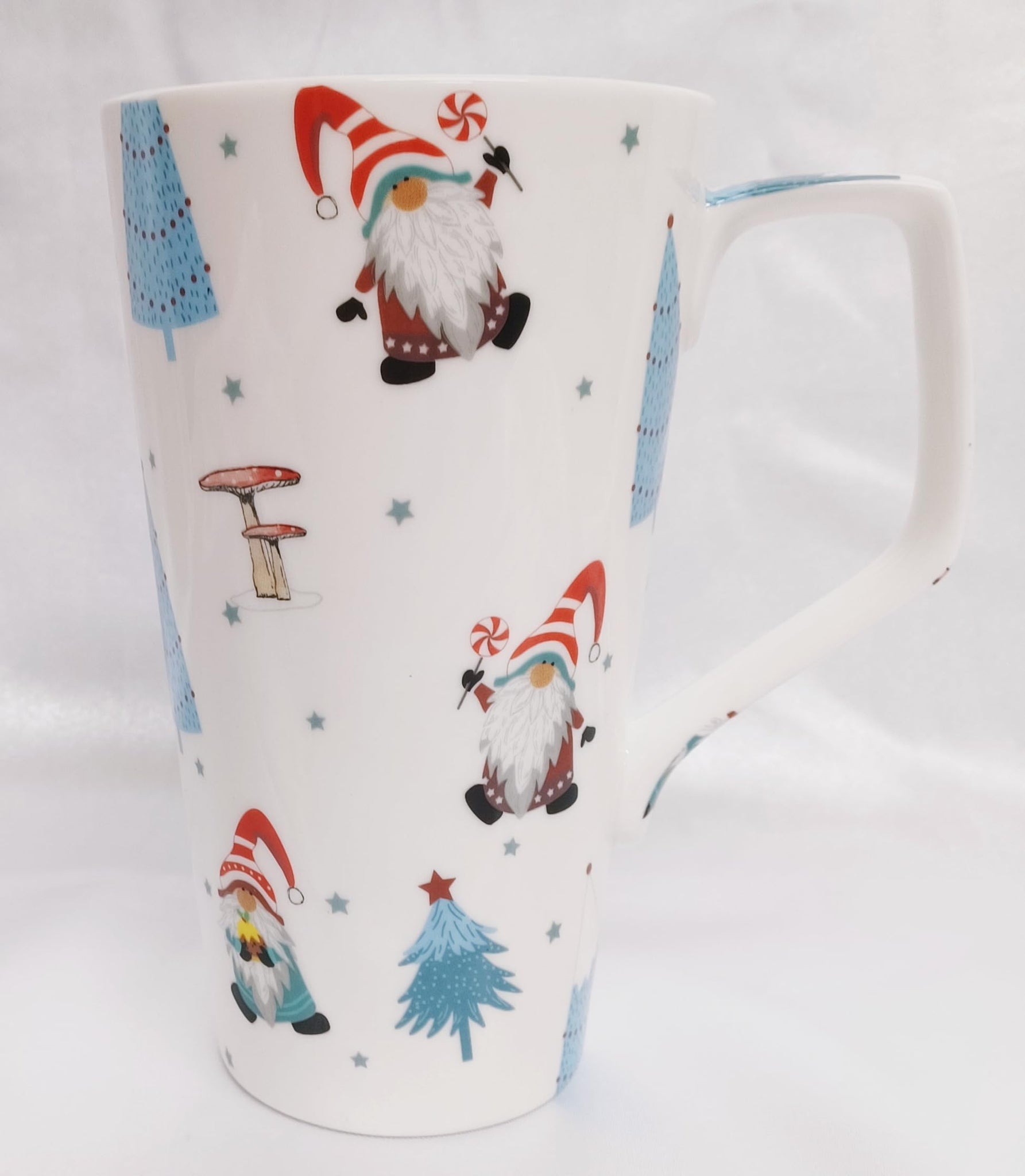 Details: Beautiful Large White Fine Bone China Mug/Cup Hand Decorated in the UK with North Pole Gnomes Ceramic Transfers Design.