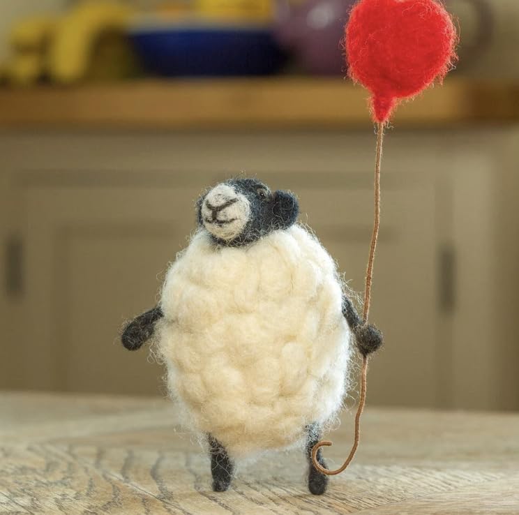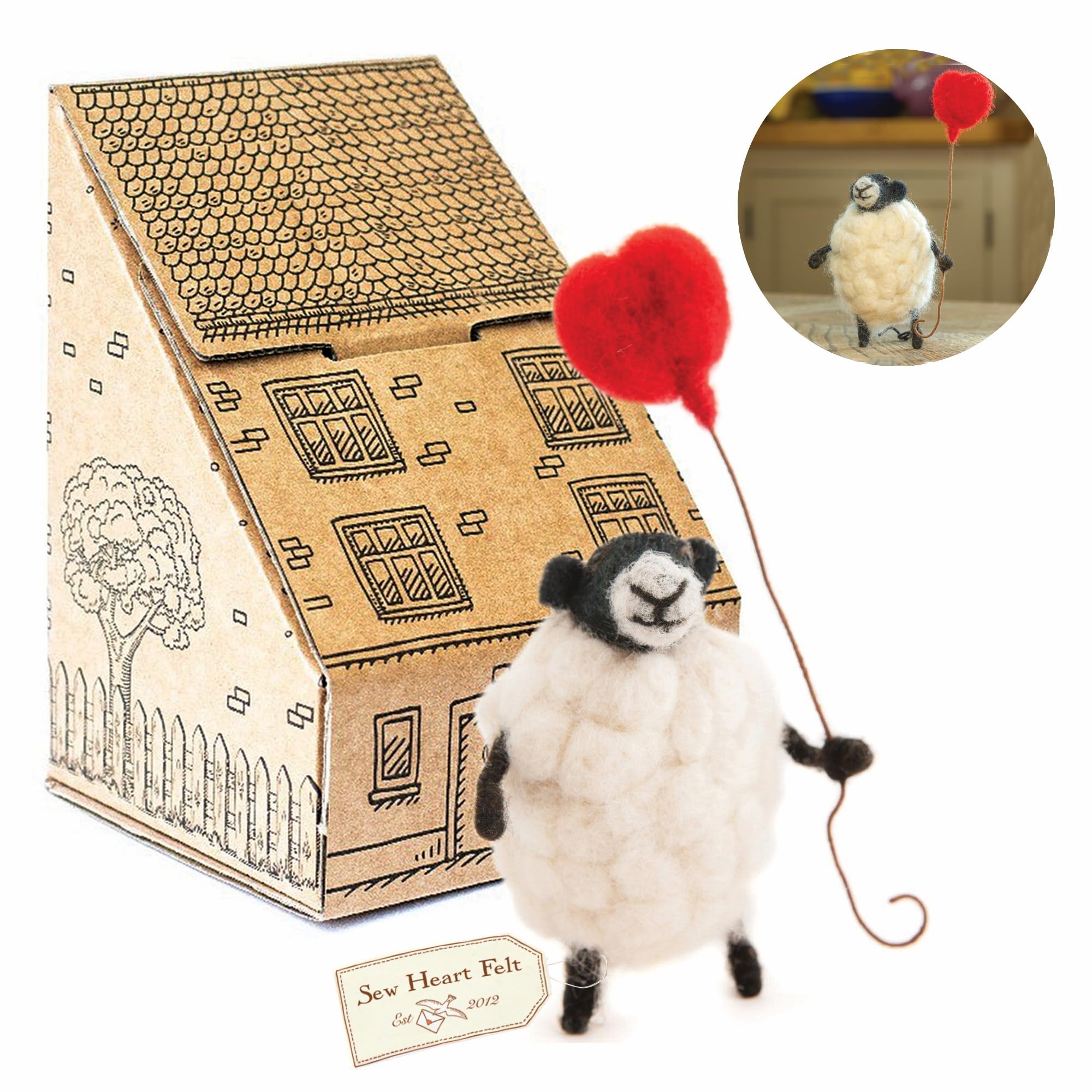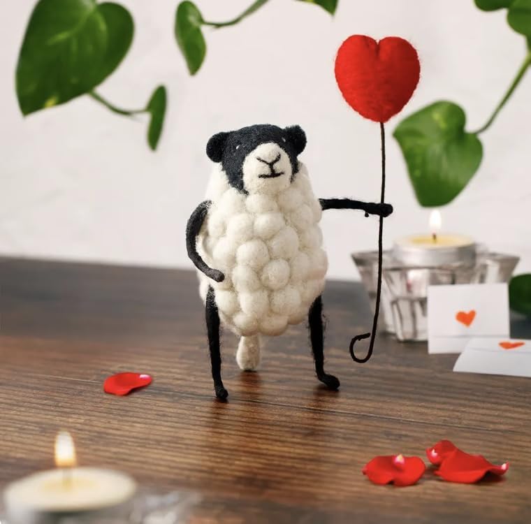 - Hand Felted Sheply Sheep with Heart Balloon - This lifelike, character-filled sheep holds a red heart-shaped balloon high for all to see! An artisan masterpiece, delivered in a charming little home gift box—perfect for kids, friends, couples, or as a thoughtful gift.