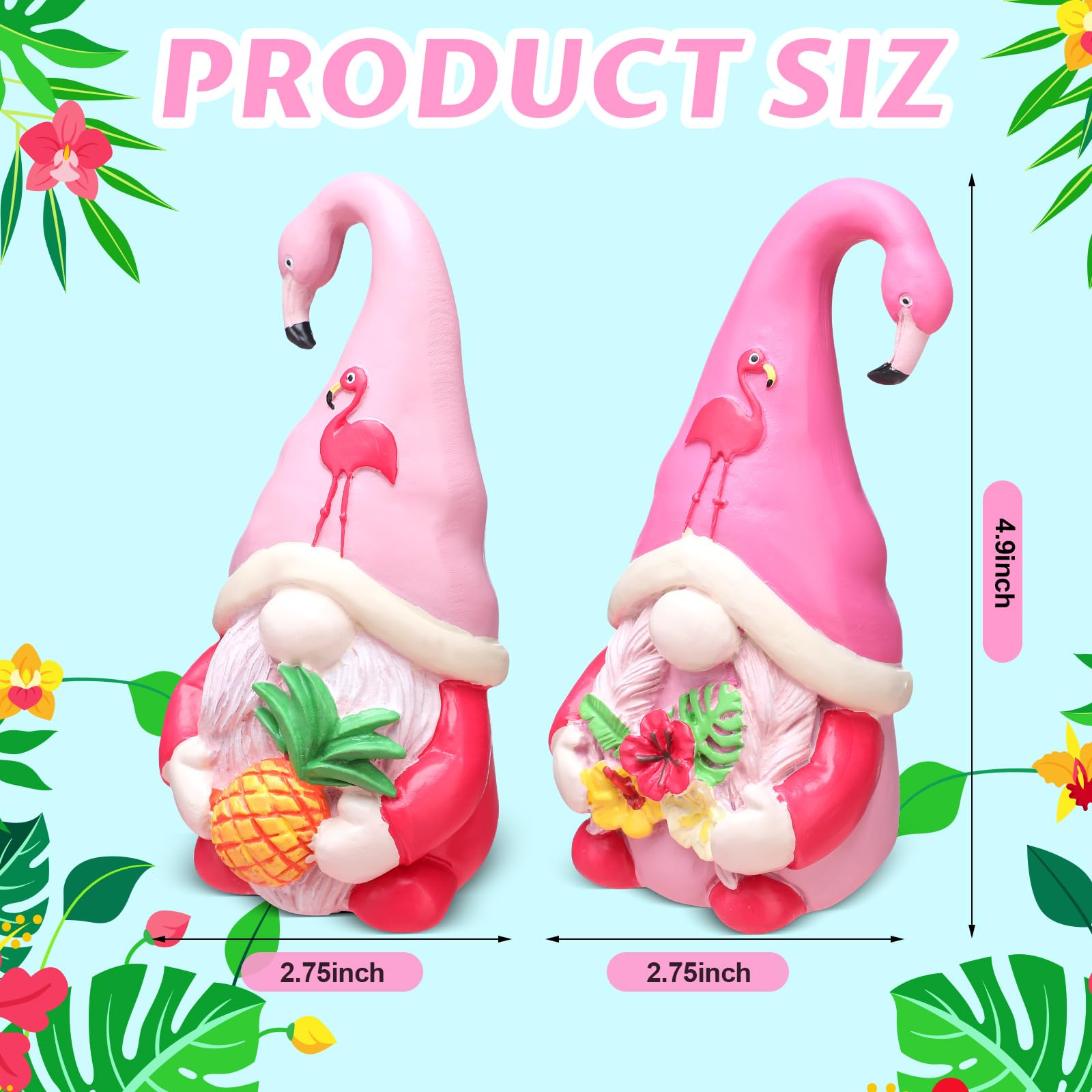 - Flamingo-theme Inspired Design: with intricate carving, our flamingo gnomes are inspired by the festive vibe of summer; These guys not only sport flamingo hats on their heads but also proudly hold tropical flowers and pineapples, embodying the essence of a summer fiesta