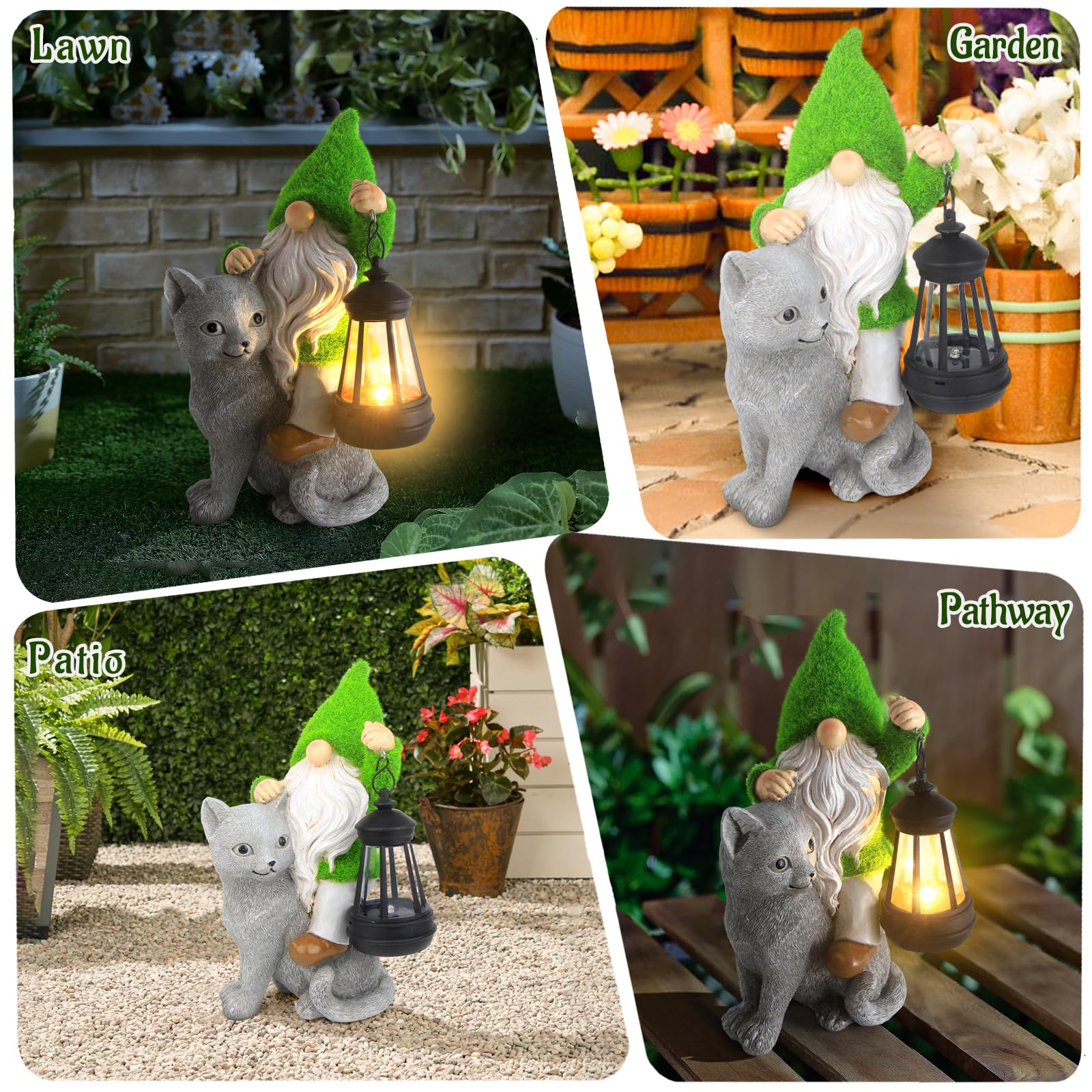 - Solar Garden Statue - Illuminate your outdoor space at night with this adorable gnome statue featuring a light-up lantern and a cute cat that emits a warm glow as the sun sets or the surroundings become dark by absorbing sunlight during the day with the quality solar panel-equipped.