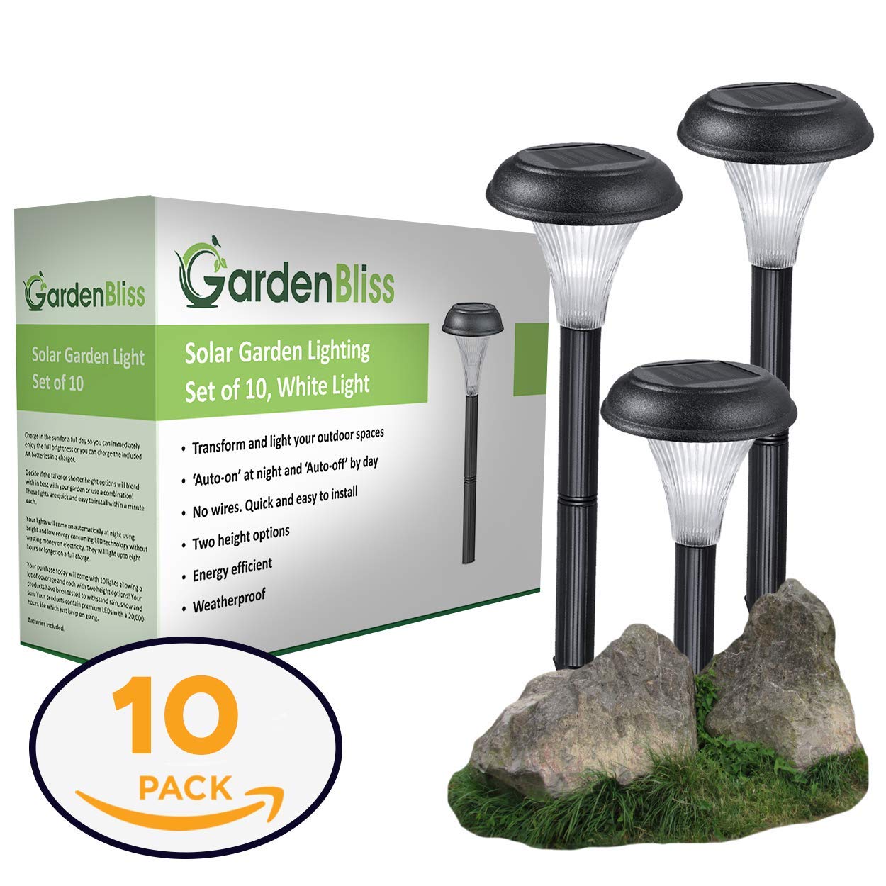 - Solar Garden Lights for Outdoor – 10 Brightest Light Set - Transform Your Paths, Garden, Flowerbeds, Borders and Drive - Easy NO Wires Install - Double Waterproof Seal - Stylish Design and 30cm Tall