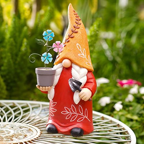 - Charming Solar Gnome Design: This creative garden gnome features a whimsical design of a dwarf holding a flower pot, adding a touch of charm and personality to your outdoor space
