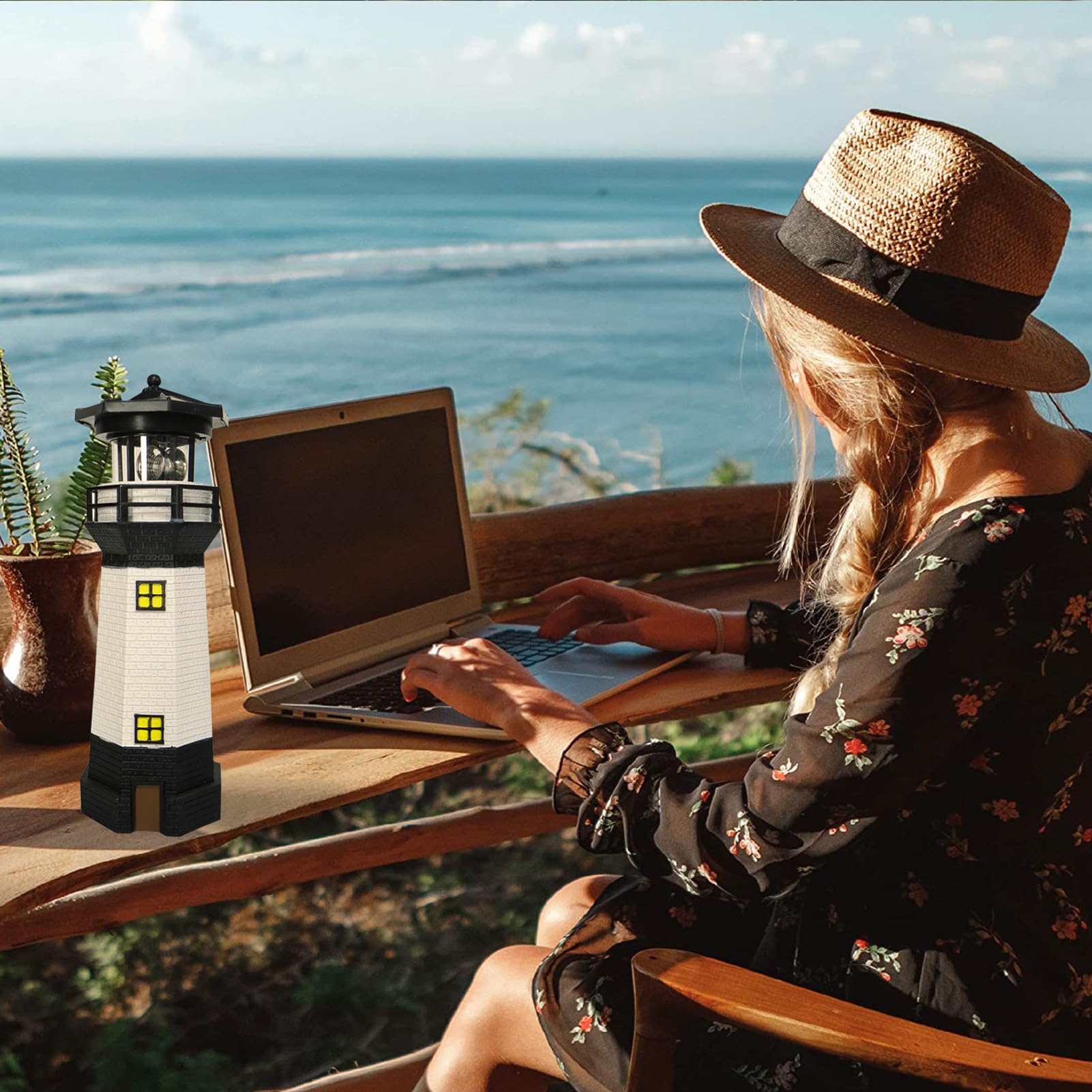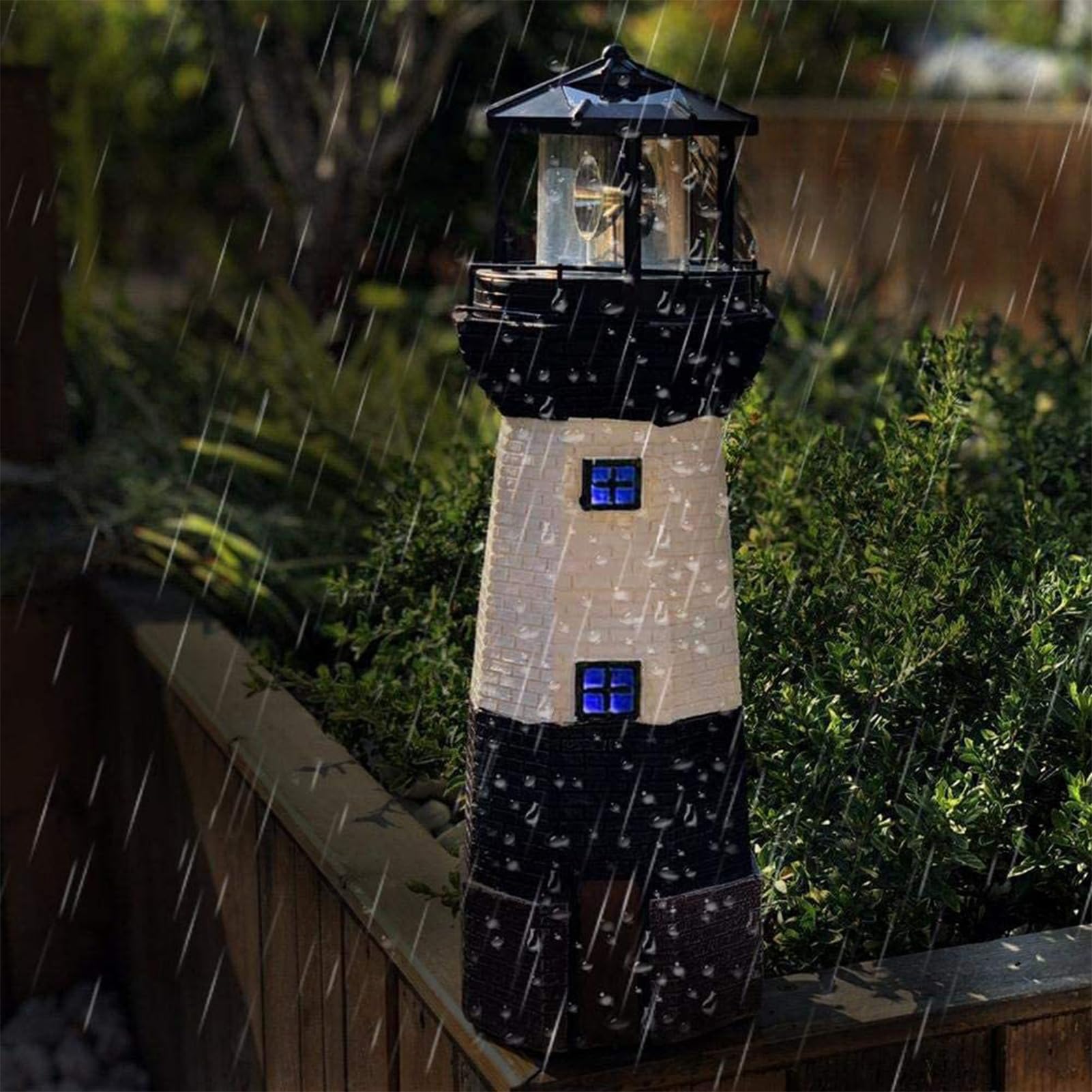 - Solar Lighthouse Design: With rotating beacon LED light at the top of the lighthouse, powered by solar energy, charging in the sun during the day and automatically lighting up at dusk, while the beacon rotates. It is a perfect garden decorative addition