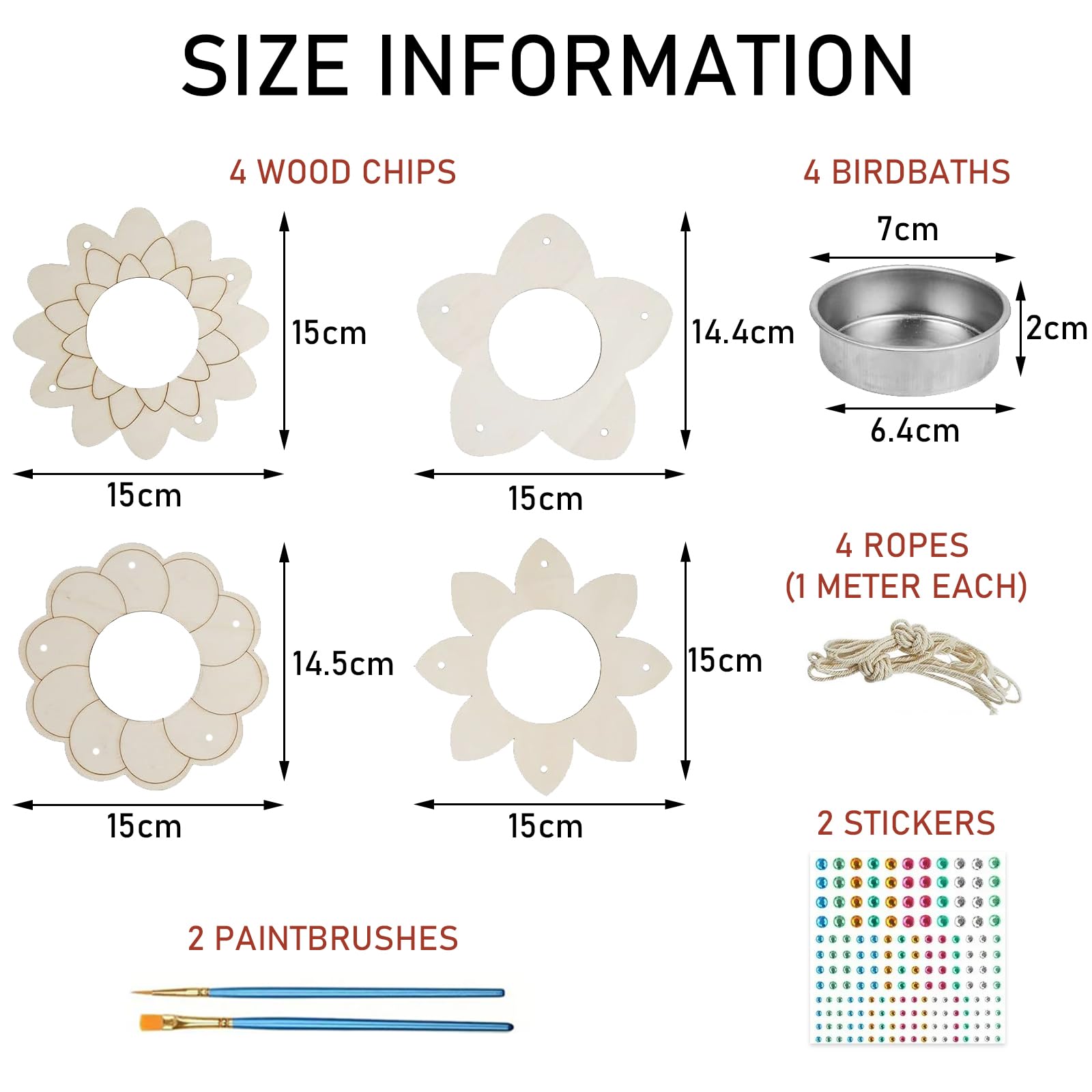 - 【Package Contents】The package includes 4 packs unfinished wooden bird feeders, 4 stainless steel bowls, 2 painting brushes, 1 bundle of twine and 2 sheet of self-adhesive rhinestones, which is of great value.