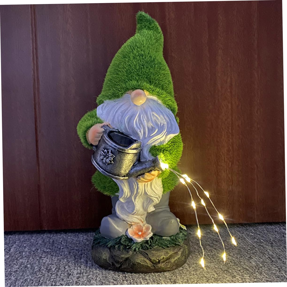 - Gnome lamp gnome statue--it has a solar panel, which can automatically light up at night and recharge during the day,garden solar lamp
