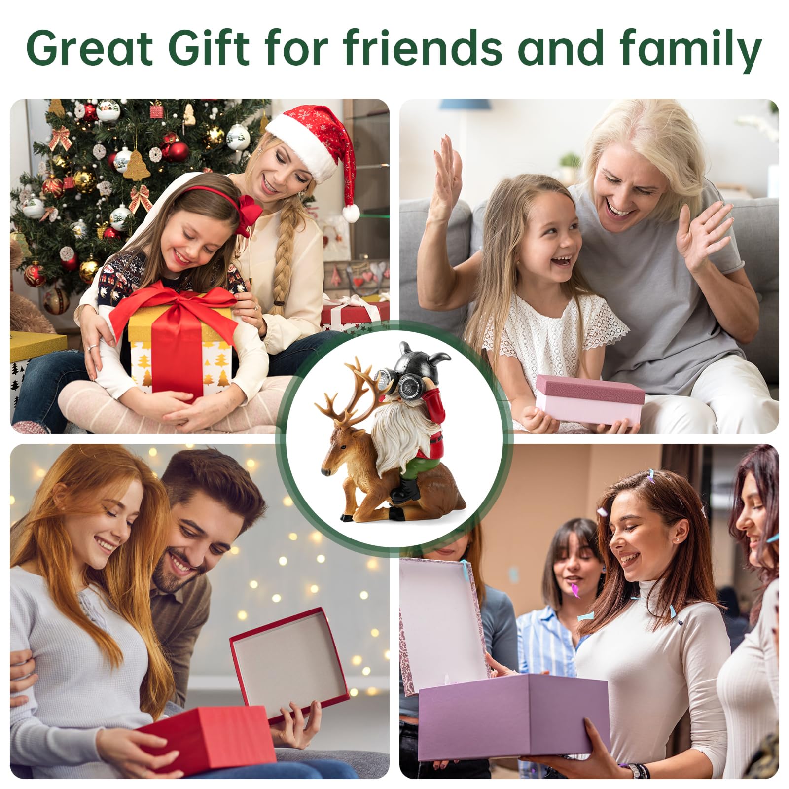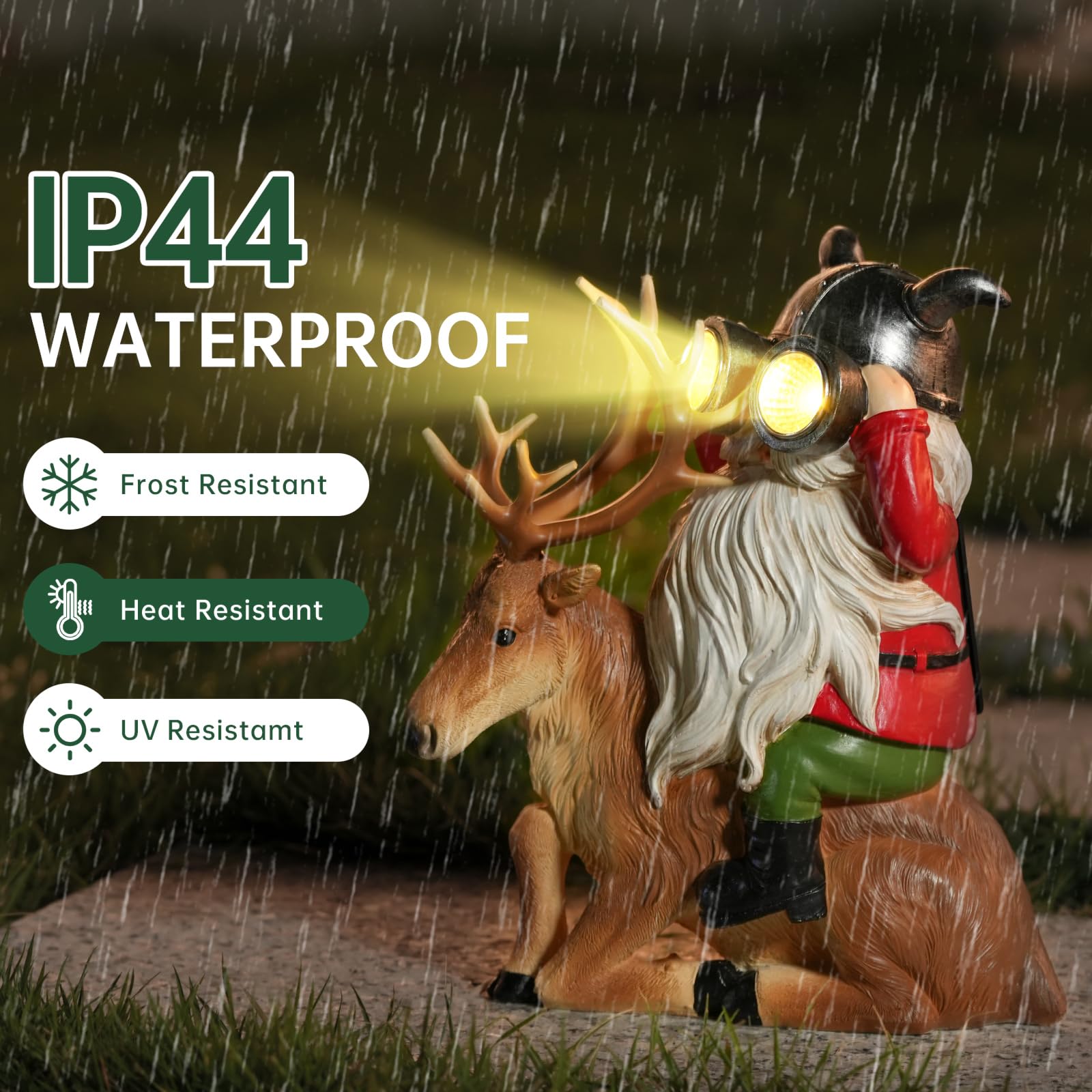 Details: VChymm Garden Gnome Statues Resin Gnome Sitting On Deer Statues Solar Lights Outdoor Telescope Gnome Gifts for Yard, Patio Decor Gift (Deer Gnome)