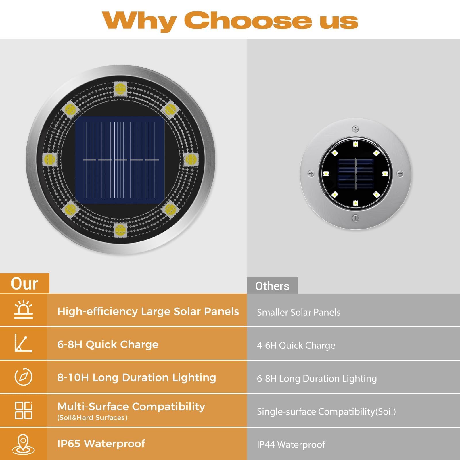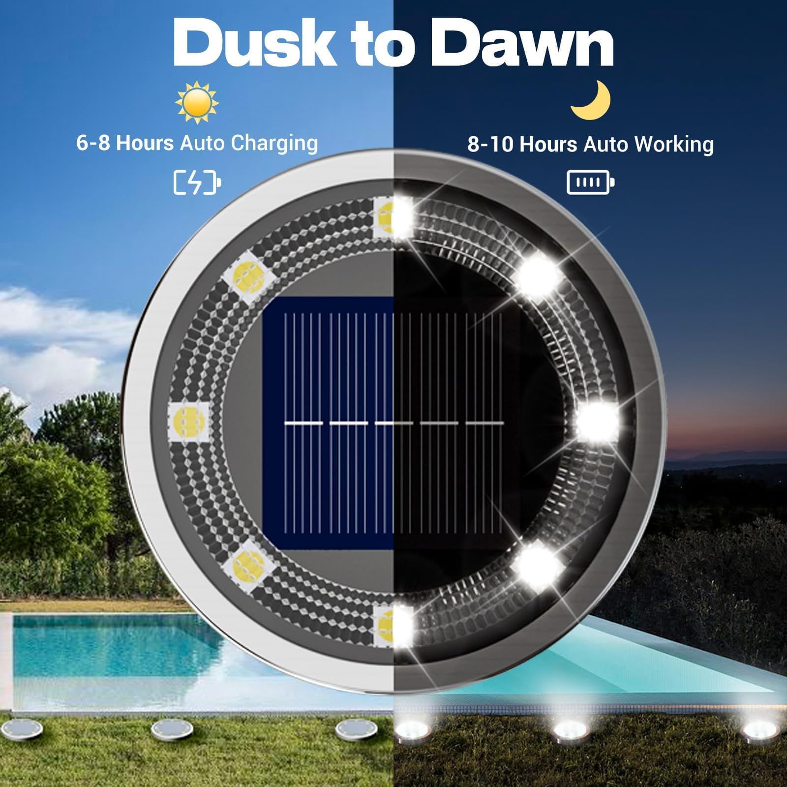 - 【Fast Charging, Long-Lasting Glow】Solar garden lights with built-in high conversion rate solar panel and 600mah long life battery, equipped with 8 energy-saving LEDs—charges fully in 6-8 hours under sunlight, delivering 8-12 hours of bright illumination. No more dimming mid-evening