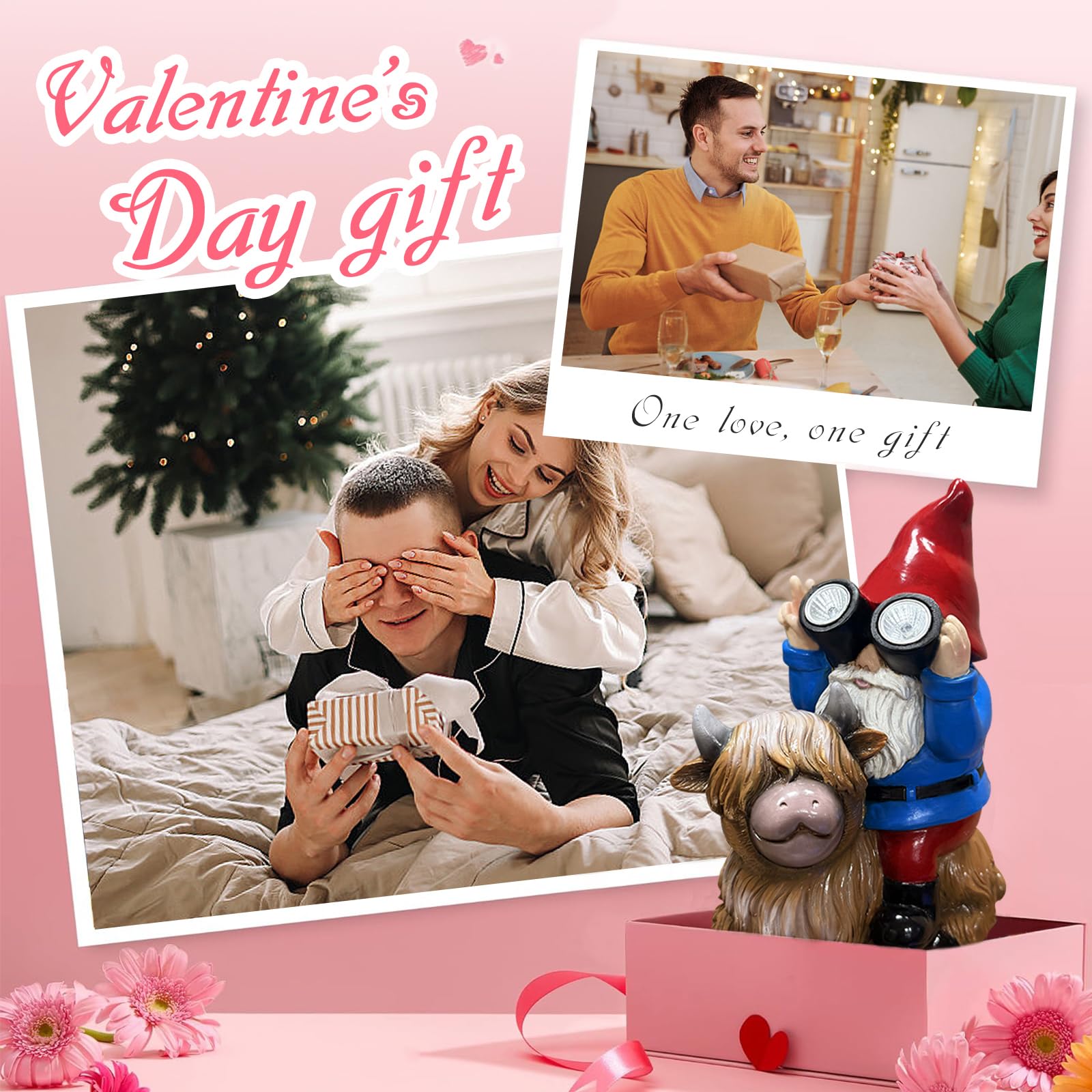 - 🐮Solar Lights Outdoor Statue: This cute and brave garden gnome sits on a highland cow, surveys its surroundings with binoculars, raises finger at enemies to show its anger and determination to defend home, and guards the beautiful garden, adding color and life to garden.Thanksgiving christmas anniversary housewarming gift for mum dad lover colleague friend.