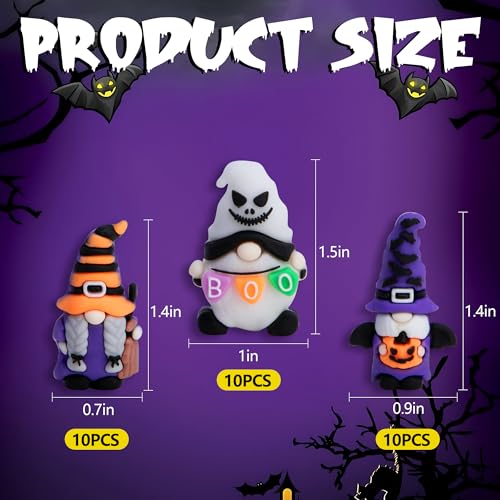 - Package Includes: You will receive 30 pcs Halloween mini gnomes figurines in 3 shapes and mini size, 1.4 x 0.7 inch, 1.4 x 0.9 inch, 1.5 x 1 inch, cute and eye-catching, enough quantity to make your decorative environment full of Halloween atmosphere.