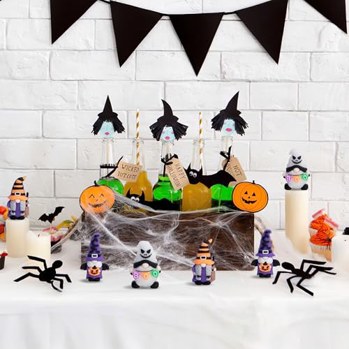 - Halloween Theme: These Halloween mini dwarf ornaments have 3 different halloween-themed shapes. One is wearing a purple coat and a black orange striped witch hat with a broom in hand, another is wearing a purple coat with black wings and a black purple witch hat with a pumpkin in hand, and the other is BOO ghost, adding details to Halloween.