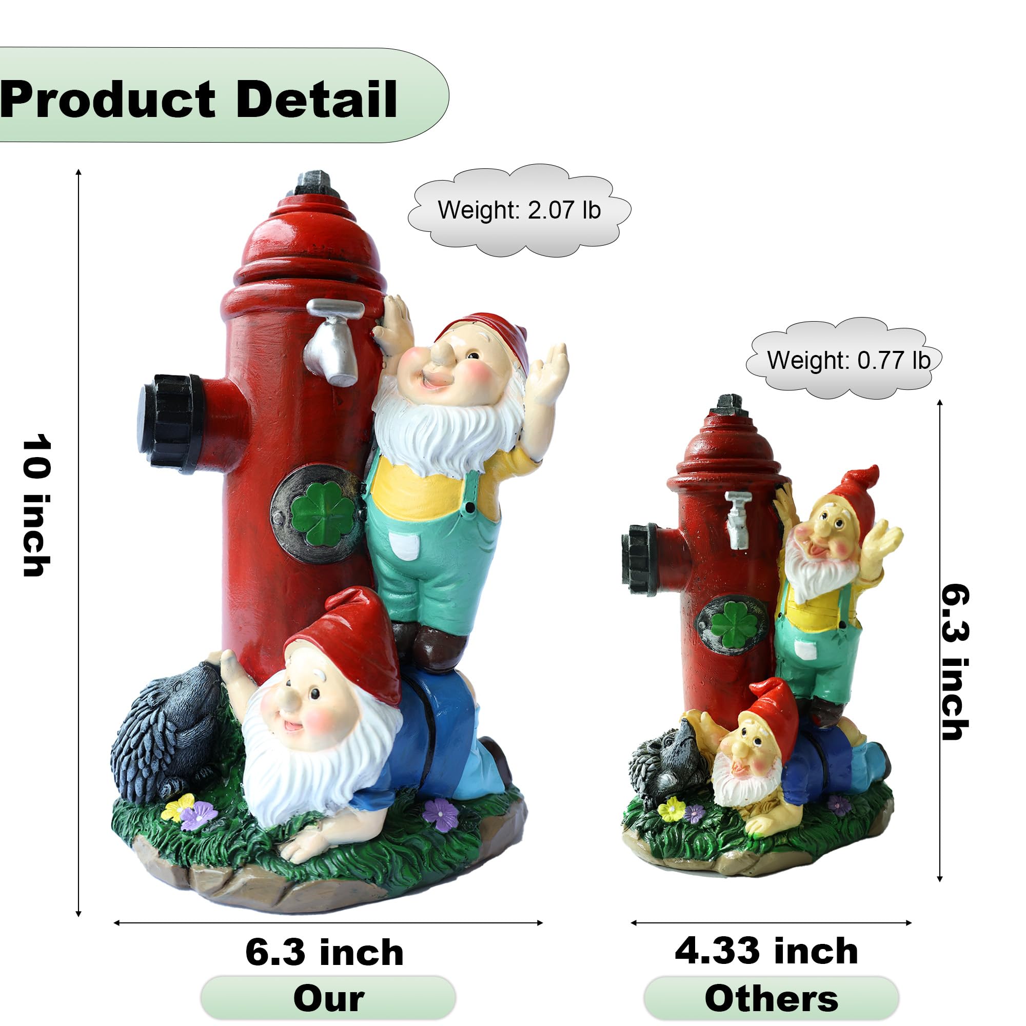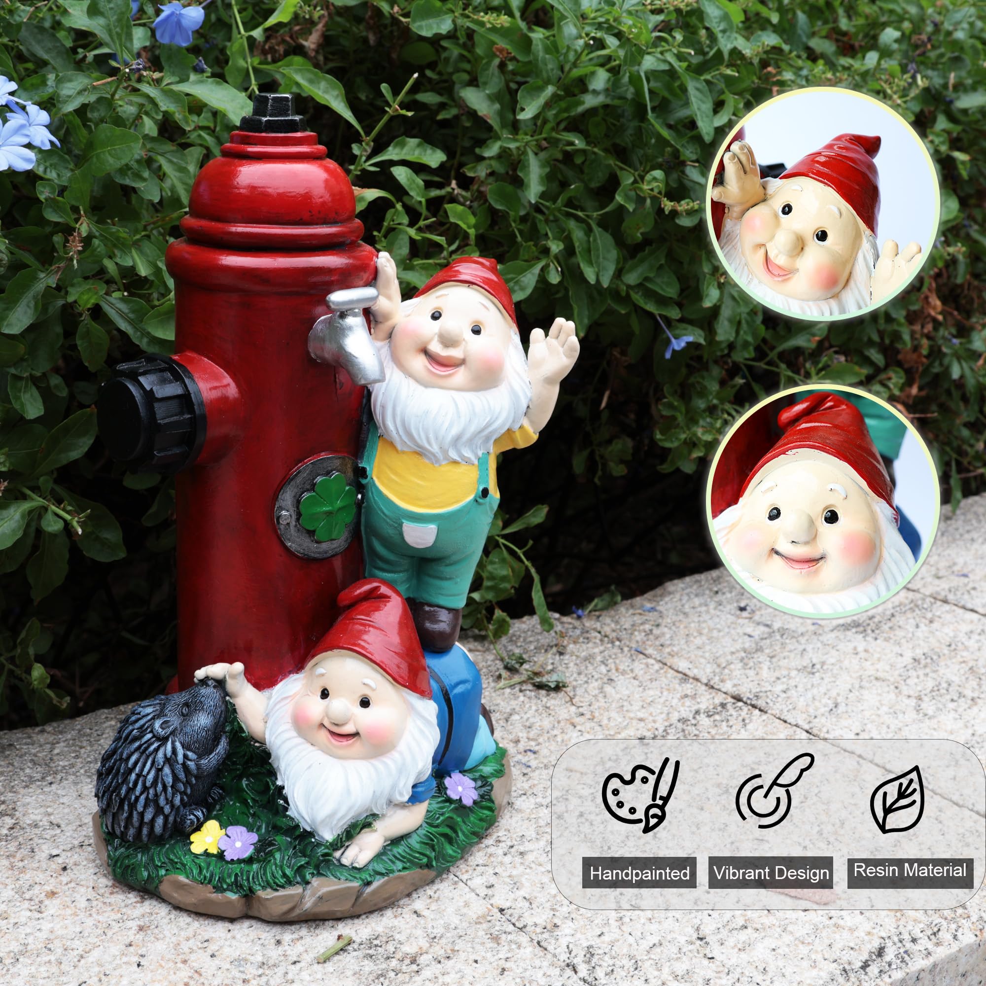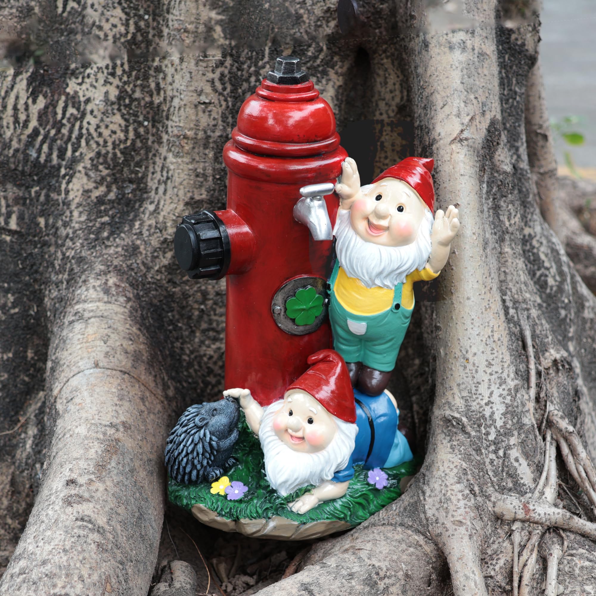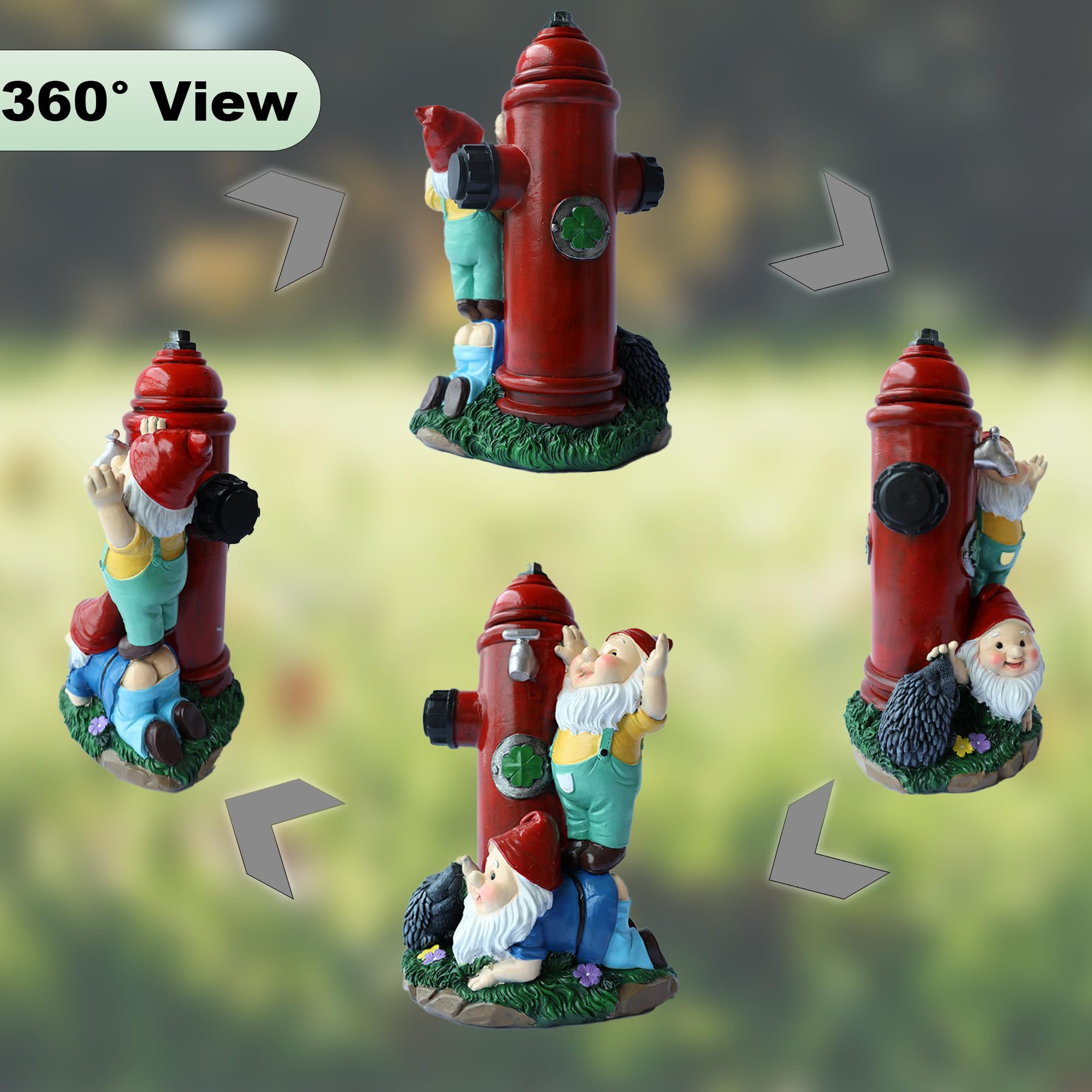 - Funny Garden Decoration: The fun design of fire hydrant and 2 funny gnomes with flowers and hedgehogs on the lawn, bring a touch of whimsy to your garden or yard. Adds a delightful focal point to your patio, lawn, or garden beds