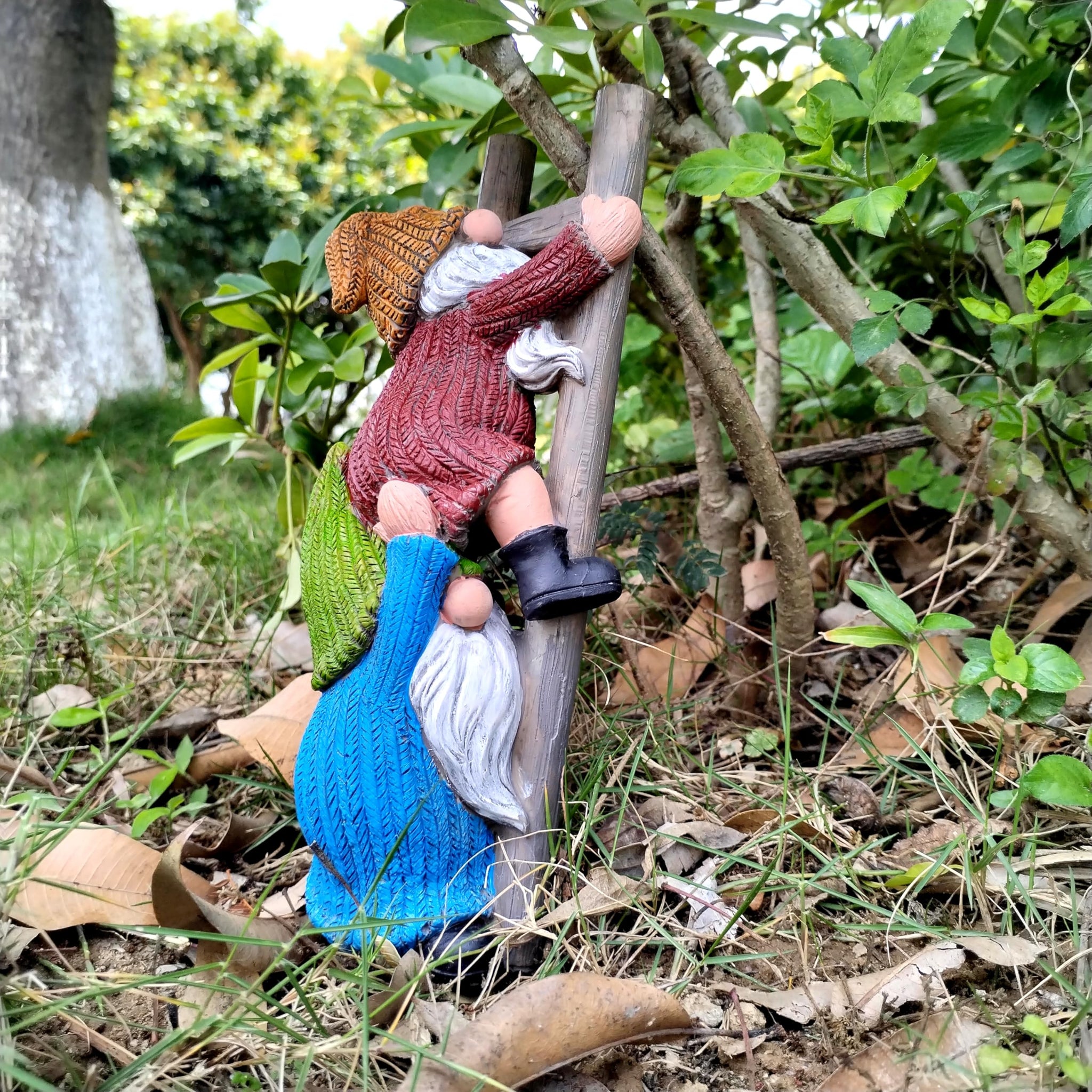 - High quality material: Funny Climbing Ladder Gnomes Figurine Resin Sculpture Outdoor Decor is weather-resistant, waterproof, and UV-protected, ensuring it withstands the elements while maintaining its vibrant colors. The hand-painted details and realistic 3D design create a lifelike effect, making it a standout piece in any garden, backyard, or outdoor space.